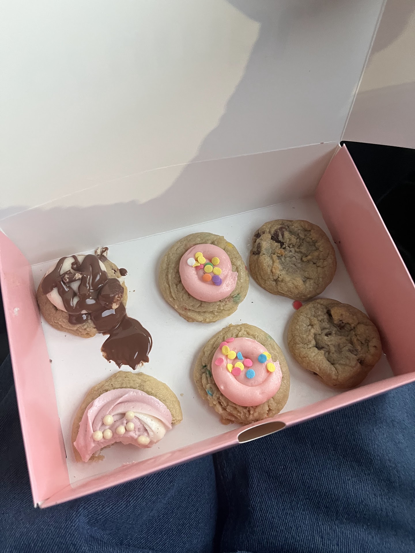 Food: The food was really mediocre. First, we tried the milk chocolate cookies. They’re not our favorite, but they were okay. We waited a week to try our favorite, the semi-sweet cookies. Our family told us this location never adds salt to them, which led to some debate since the salt is a must for these cookies. Finally, the day came, and we ordered them. We were excited, but to our surprise, it seemed like they forgot the salt. After a few hours of running errands, we were ready to eat them, but they had already turned hard! The flavor was “meh,” not even close to the ones in GA. In GA, the cookies stay soft until the next day, and the flavor is noticeably better. It felt like we were scammed with a knock-off “Krumbl” cookie. If someone in a position to fix this is reading, please address the issue, this franchise doesn’t maintain the same consistency or flavor as the GA locations.