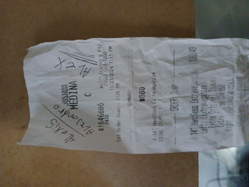 Read moreIve been to Dominos in the past. The experience has always been good, but today's experience was EXCEPTIONAL. The young man(Alex Quezada) who took my phone order was exceedingly polite, very knowledgeable about your specials and prices and went out of his,way to be friendly, courteous and helpful. This kind of work is very hard to find. This person should be commended and kept in mind for managerial positions. At the VERY least be given a raise and an opportunity for instructor status. He is THAT good. Congratulations. Exceptional training. Keep up the great work. I will definitely be coming back. And my pizzas were...