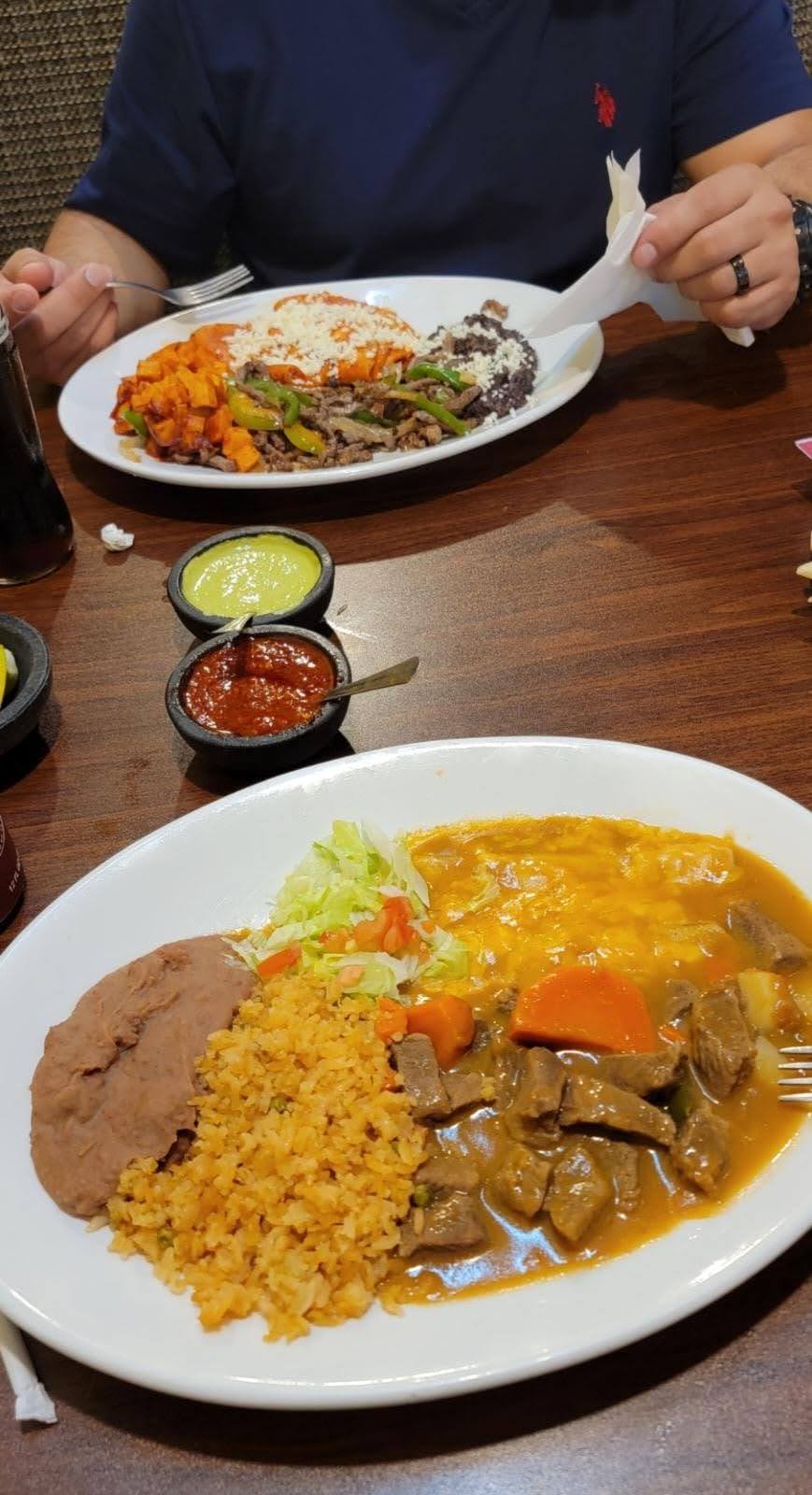 Our server was attentive and had high energy. She made our dine in experience feel like we were eating at home or at your tia's house. I had Nancy's plate that had entomatadas, fajita preparada, black beans and papas bañadas en chile de color. My wife had the combination plate that came with carne guisada, 2 american enchiladas, rice, beans and a salad. Before our orders came we got small bowls of fideo soup with tortilla chips. The flavor of our food tasted like if your mom or grandma made it. Nothing was stale everything tasted fresh and tasteful. First time eating here, but we've been to the Boca Chica location several times. Hands down menu selections and taste of food is better than Ricardos(just my...