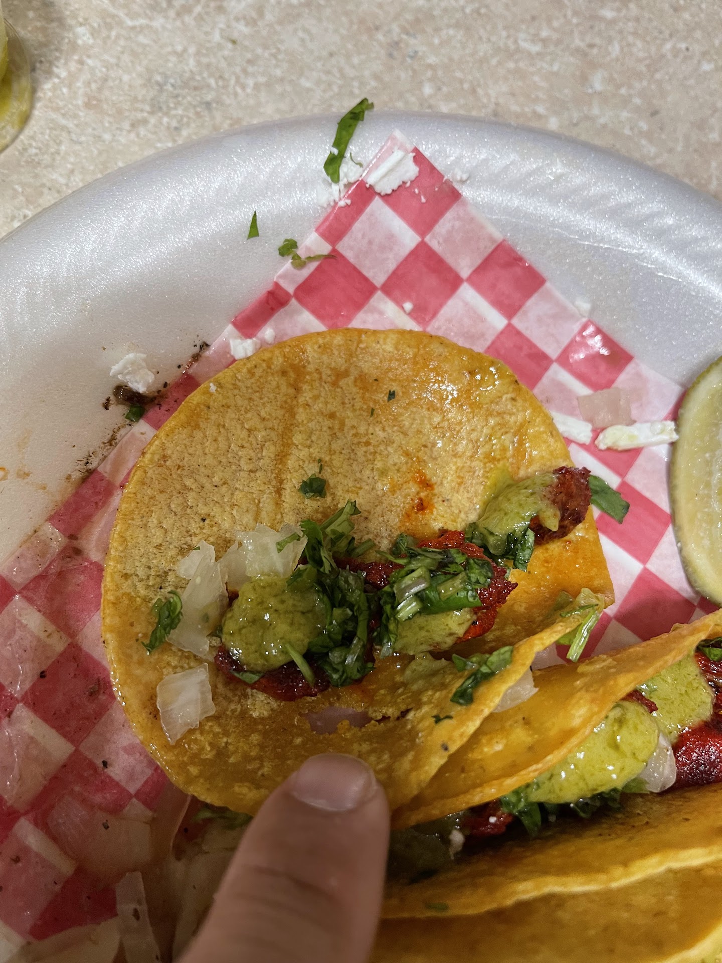 I was trying to find a place to get some Birria tacos and had stopped at a few places and shocking they didn't have them but I stopped only cause it WAS ON THEIR WEBSITES. So I finally stopped here thinking they would but they didn't. So it was about 11:30-12 lunch time. I am from out of town and just wanted some tacos. I asked if I could get chicken street tacos w onions and cilantro w lime since they didn't have Birria tacos either. The young guy said he didn't think they had chicken anymore. 🤯🤔 So he went in the back to check. No one was there and parking lot was empty. He came back and said no they didn't have any chicken! 🤯 Ok so I got beef street tacos w cheese and the toppings. It took about 15 mins and when I got home about 3-4 mins later to eat I was lil upset cause they barely had any cheese and the meat didn't have much of that either. Plus the meat tasted like it was made earlier that morning. On top of that I only had one corn tortilla on all the tacos so when I went to eat them they fell apart. For as much as I paid for the 5 tacos w everything and 5 tacos w just cheese u would think they would put meat and cheese on it and made it right!!! I was very disappointed! I will not go back to this...