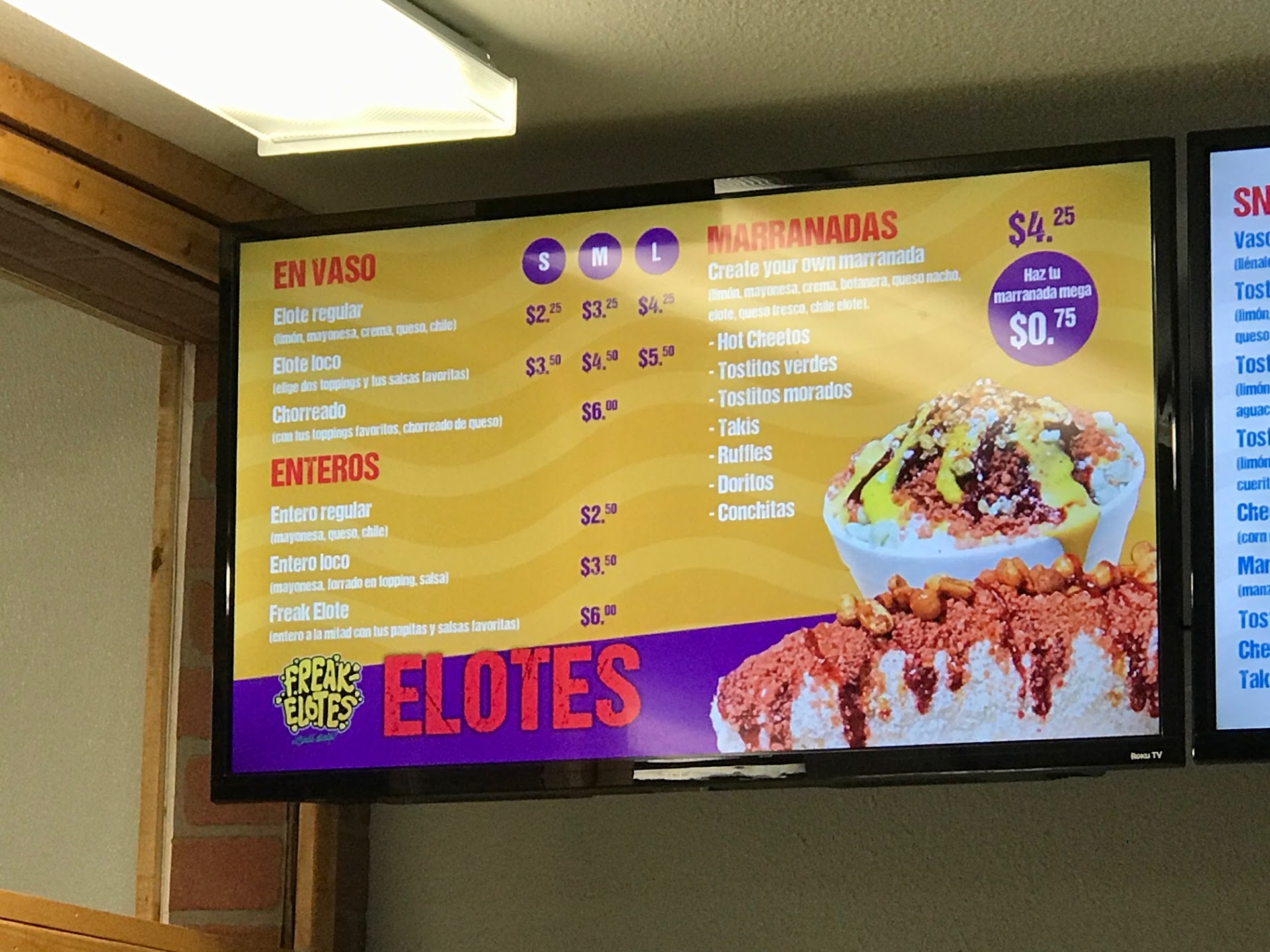 FREAKELOTES was great! The service was good, and the elotes were a great bargain. Inside the store/restaurant was pretty bare but well designed for social media.