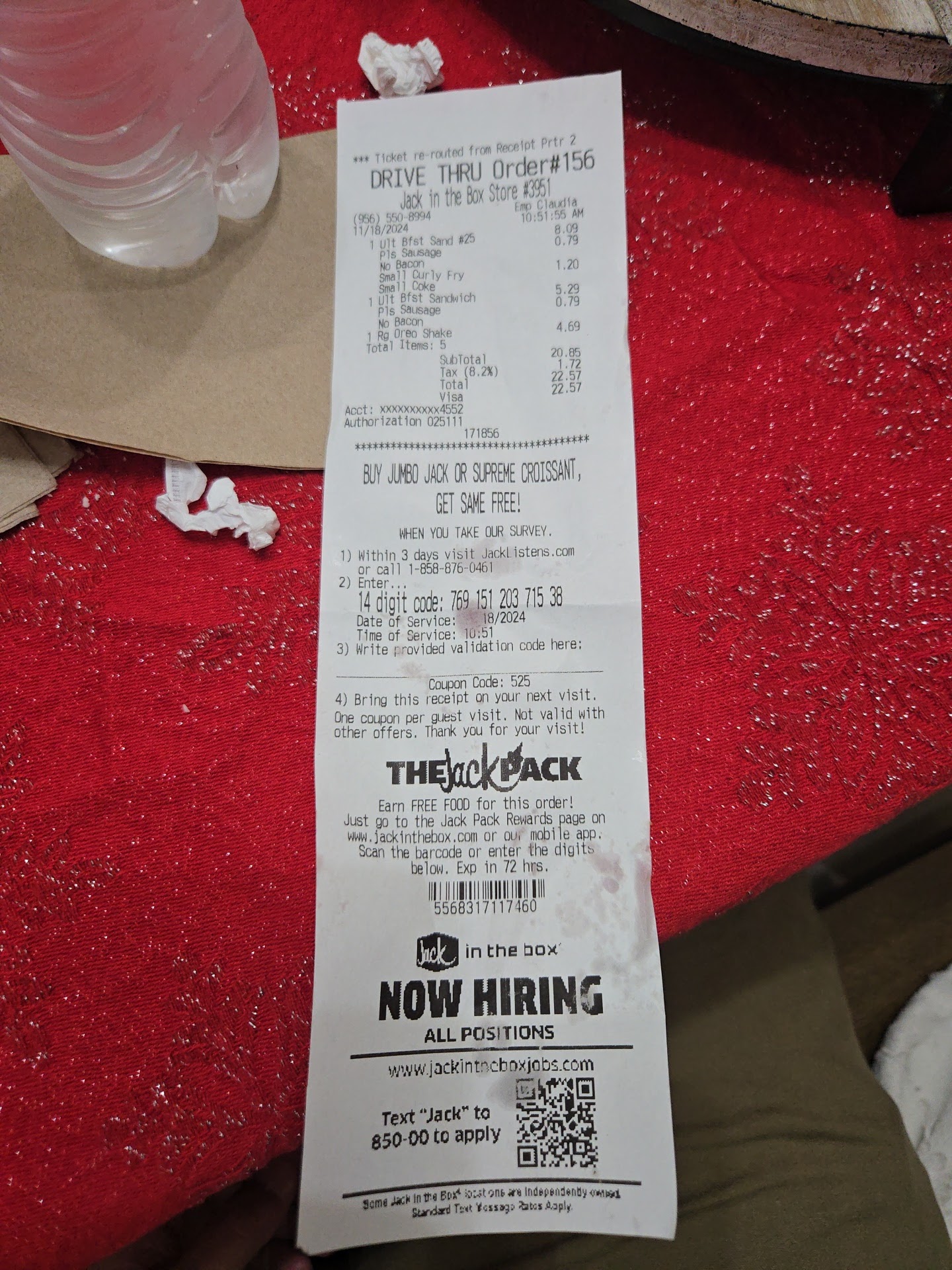 Whomever the franchise owner is at this location has failed their employees and the customers. Morning cashier Paola acts like the sauces she gives you are taken right from her check, as if asking for sauces will make a break the business. I asked for a receipt and was told the restaurant ran out of paper. When I asked to cancel the order since a receipt will not be provided Paola magically found a roll of receipt paper. I asked for strawberry jelly and was told they don't have any. Be cautious as this location's drive thru menu prices are different than what the Cashier charges you. The owner was already provided this information and vowed to fix it and hasn't in the 3 or 4 months since bringing it to their attention. The owner of this location is clearly pinching pennies and has placed enough fear in his employees to try and offset these costs with there actions. I feel sorry for Paola, her Manager and all her coworkers that put up with this behavior from their employer. Clearly Jack in the box corporate needs to intervene, assess and make hard decisions to correct this abusive behavior of employees at...