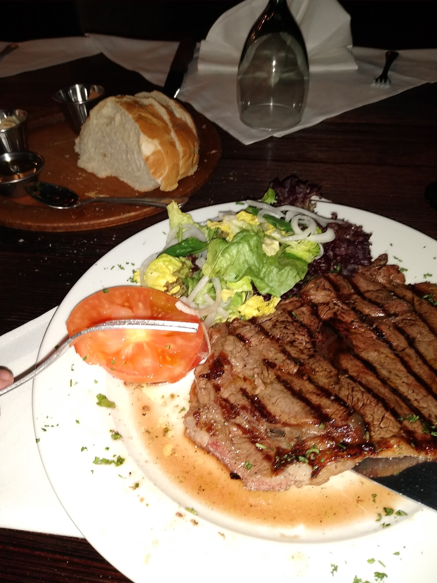 The steak was poor. There's no other way to say it. It was a poor cut, it was tough and it was bland. The cook seemed fine, although it was thinner than I expected. There was just very little flavor. It tasted like a borderline chopped steak. This was the most disappointing aspect of the night. I could forgive the other things, but there's just no way to sugar coat this one.