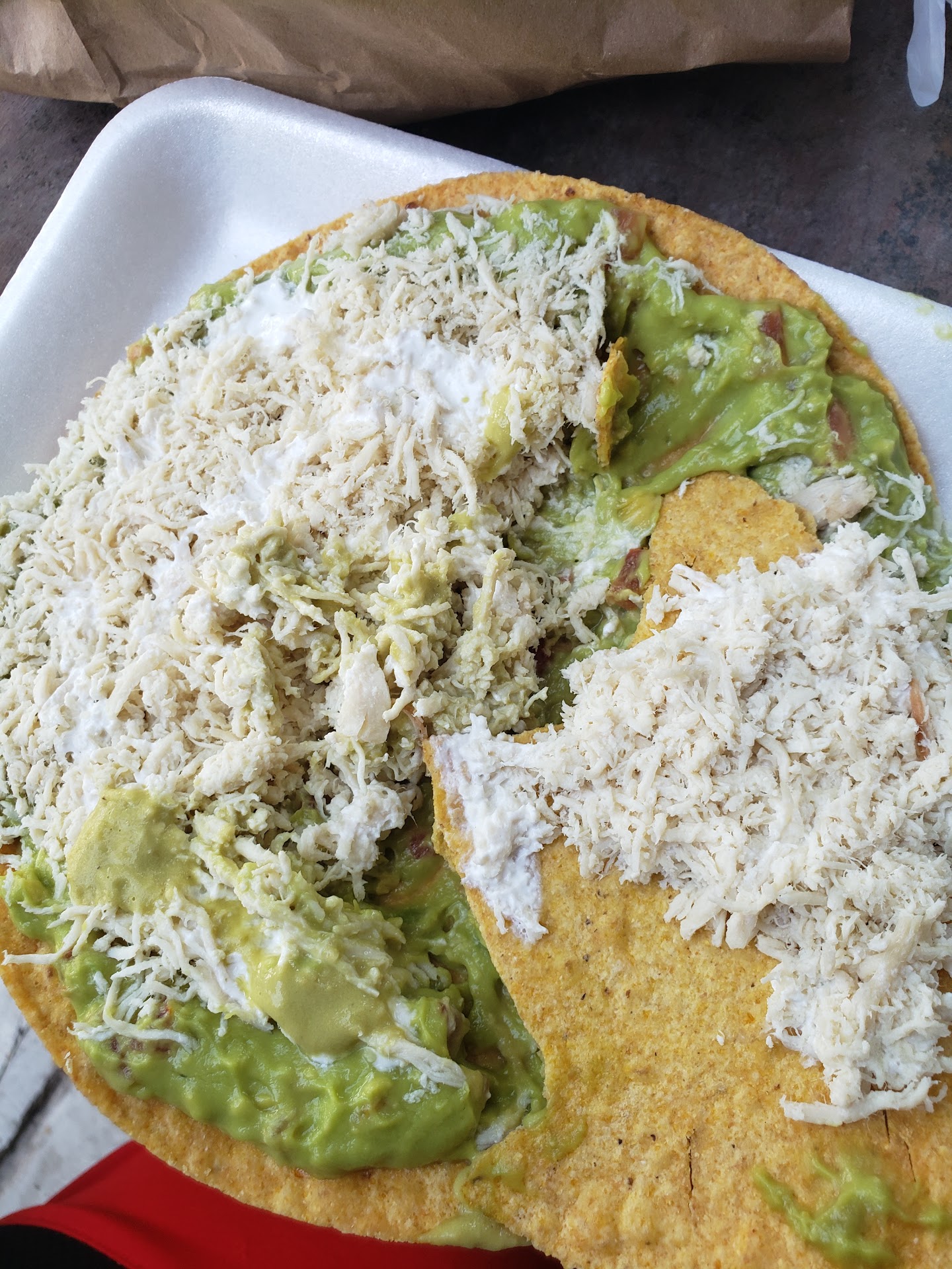 Tried ordering tacos but they only had the Pirata taco so we ordered a Chicken Deshebrada Tostada to go instead but I would not recommend it. It tastes like a mix of tuna fish & canned chicken in water on top of an avocado spread with a touch of sour cream sandwiched between two old stale tortillas tostadas. "To go" doesn't even come on foam plate or even wrapped in aluminum foil, its just half wrapped in a small piece of wax paper inside a brown paper bag. I expected better for the price tag. I ended up giving the rest away to someone with nothing else to eat & he ran for the toilet while we were in mid conversation. I got myself Taco Palenque instead which was cheaper than this place. Save your money & go somewhere else perhaps even a Subway footlong for actual chicken breast at...