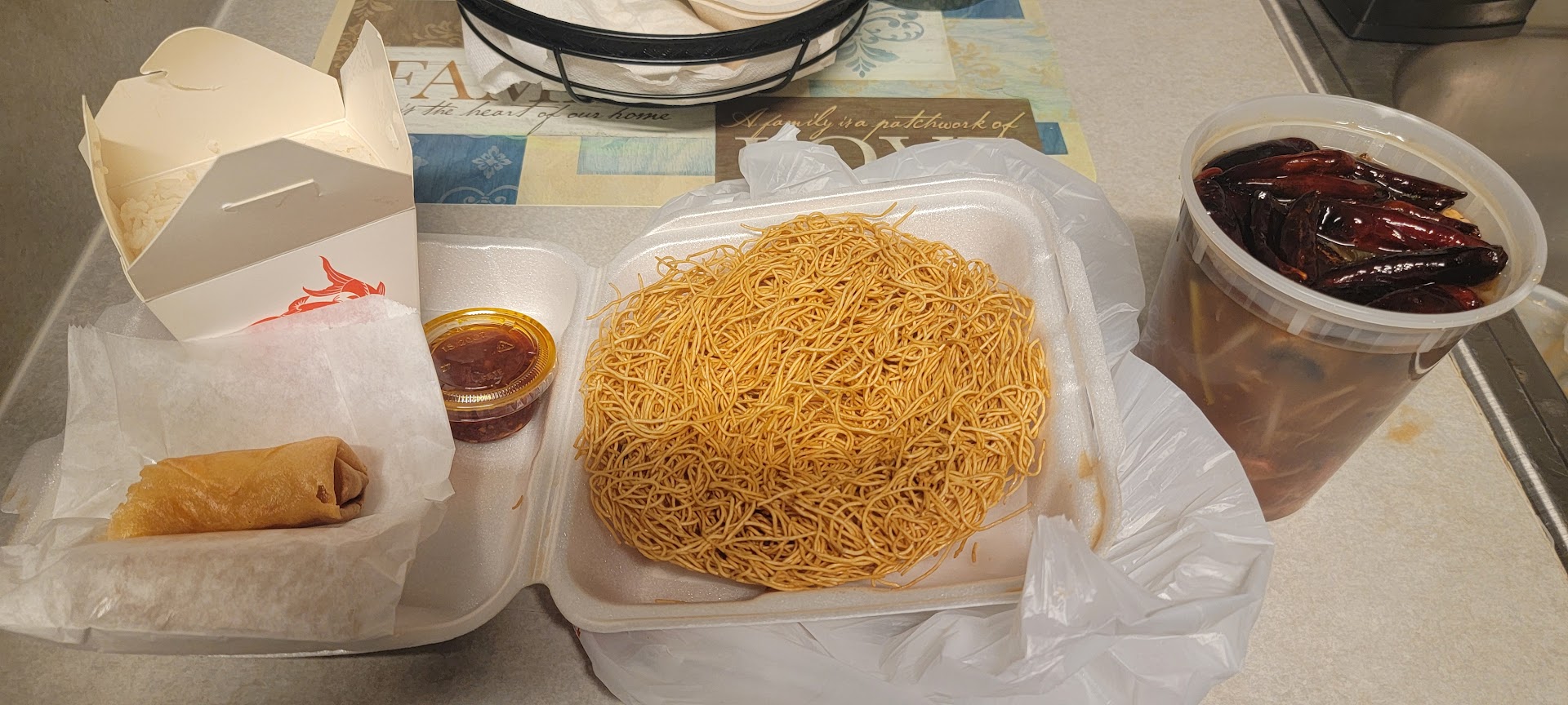 Read moreMy 1st time of ordering the Hong Kong Crispy Noodles and I chose roasted pork as my protein- DELICIOUS!!! Everything came seperate/ Noodles, broth ( extremely flavorful & very light ) that contained spices & veggies + Chiles and I put everything together ( allowing me to control noodle portion to my own liking...👍 ) in large bowl 🥣 😋 I also ordered the vegetable spring (2) rolls @ $4.75 and duck sauce to eat them with. Yummy! This meal is different, lighter than their other choices/ soup consistency & enough for 2-3 ppl to share as an appetizer or as a meal for 2 @ $12.75 I ordered delivery & it was fulfilled at the exact ETA that was given to me !!! Great service!! Even the delivery man, Tomas, was wonderful!!! Lotus Cafe NEVER...