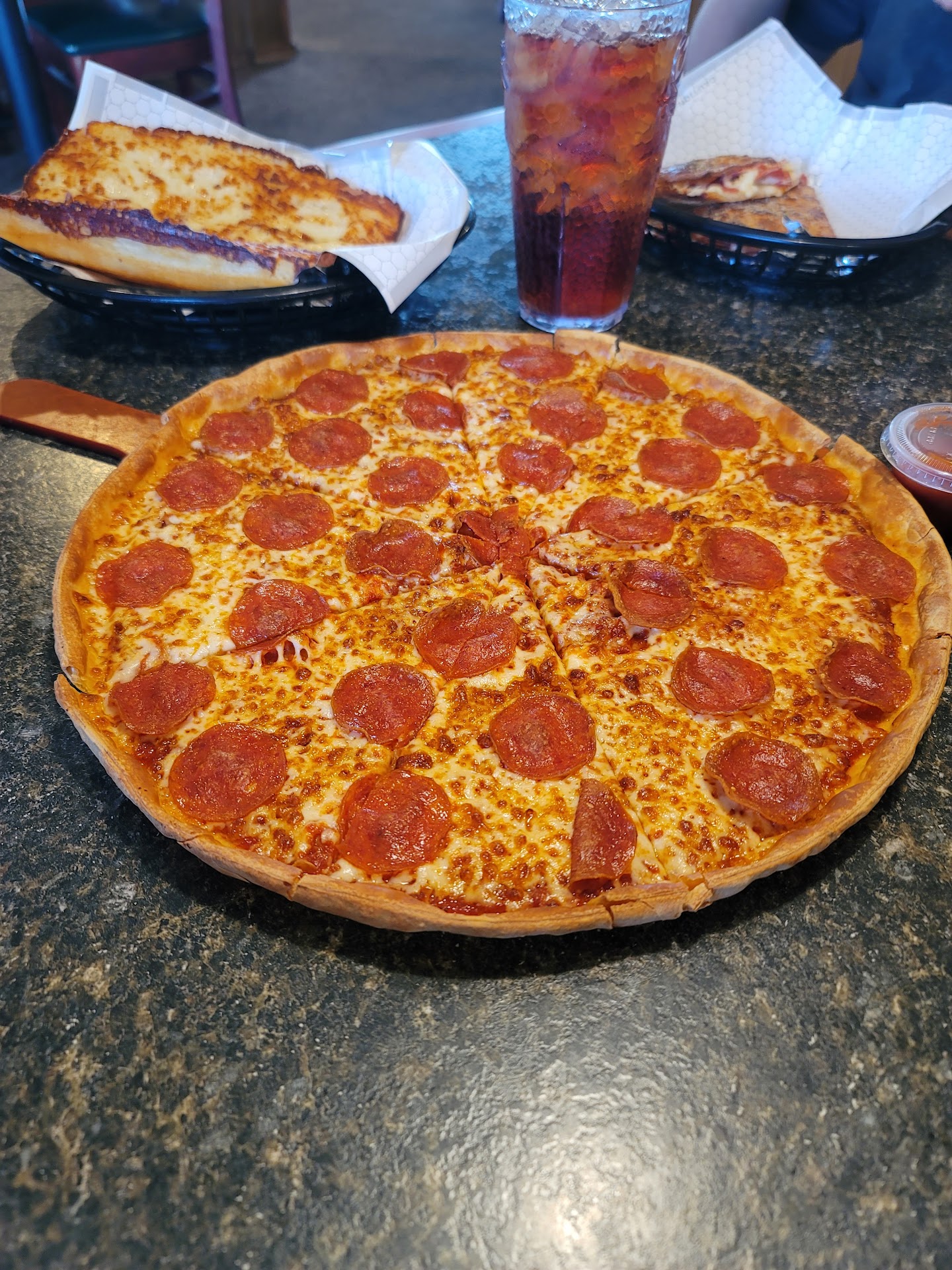 We arrived at restaurant at 8:22pm last night to have dinner before our movie at 9:55pm. We ordered drinks, cheese sticks and wings and salad along with a pepperoni lovers so few minutes later waitress brings us drinks and salads then after that cheese sticks and wings. We even finished eating it all and time was 9:15pm then we started noticing other tables started getting there pizzas that arrived after us, and we wondered what happened so we called waitress over and ask her what happened why are other tables getting there pizzas before us when they arrived after. Her words were it was a pepperoni lovers and we were like yes she then says let me check on that runs to computer and my mother notices her inputting into computer something I was like dont tell me she forgot by this time it was almost 9:30 we had to leave for our movie, we got up to leave and pay then they charged us $50 some dollars for a incomplete meal and waitress didnāt even say a Iām sorry only donāt you want the pizza Iām like for what itās not like Iām gonna eat it here she then says to take home Iām like you could have made it better by saying a Iām sorry not even that...