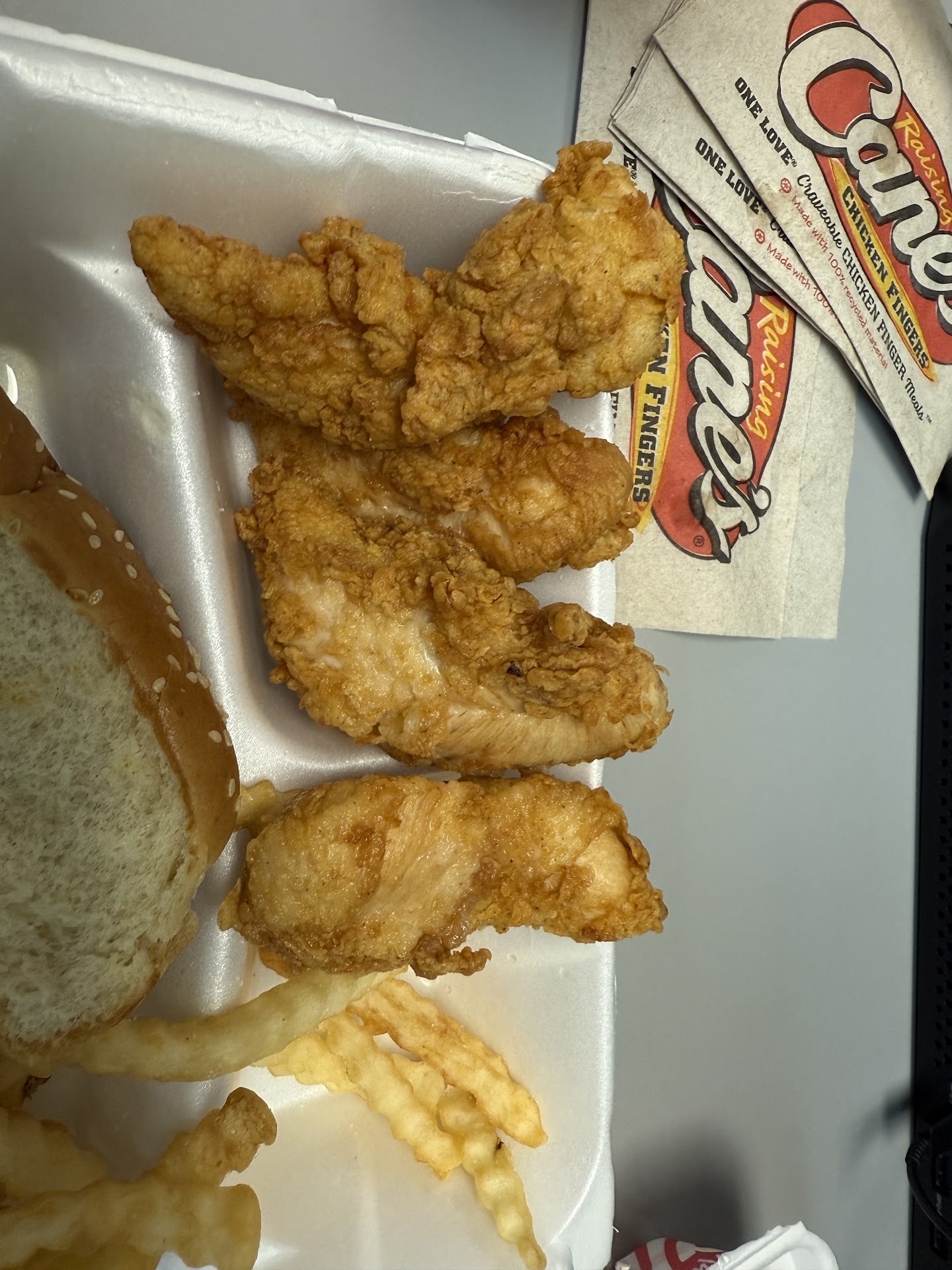 Read moreThis was my first visit and I must admit I was pleasantly surprised. The menu is simple and easy to understand your options. I modified my order which they had no problems complying with. I asked for extra crispy fries and buttered/toasted buns. The chicken tenders inside the burger were crispy on the outside and moist on the inside. The one down side was that the cashier taking my order was also attending the drive thru consumers, so it was difficult to know when she was addressing me or the drive thru. But other than that everything else was great and definitely recommend you stop by and give Raising Cane's Chicken...
