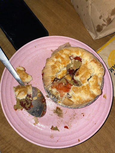 Read moreI usually have a good experience here but today was not the day. The little pie I bought must of been days old if not weeks because what ever was inside had green stuff growing in it. Not even sure if itâs mold. But hereâs a picture for reference. I usually wouldn't post something like this, but Iâm currently pregnant. If I wouldnât have used a spoon instead of just taking a bite, Iâd probably be feeling...