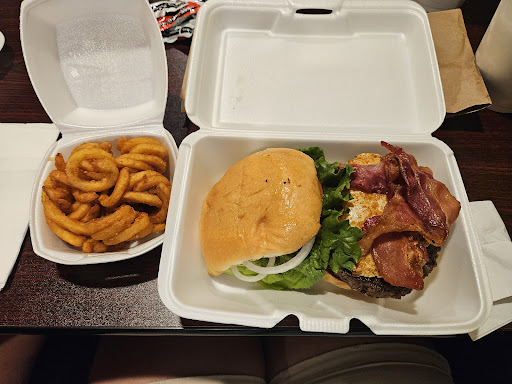 My bf got a double meat, double cheese burger with bacon and steak fries. The steak fries were good, but he ended up liking my crinkle cut fries better because they were crunchier. He tends to slather BBQ sauce on everything and it seemed like theirs was made there. It was pretty darn good.