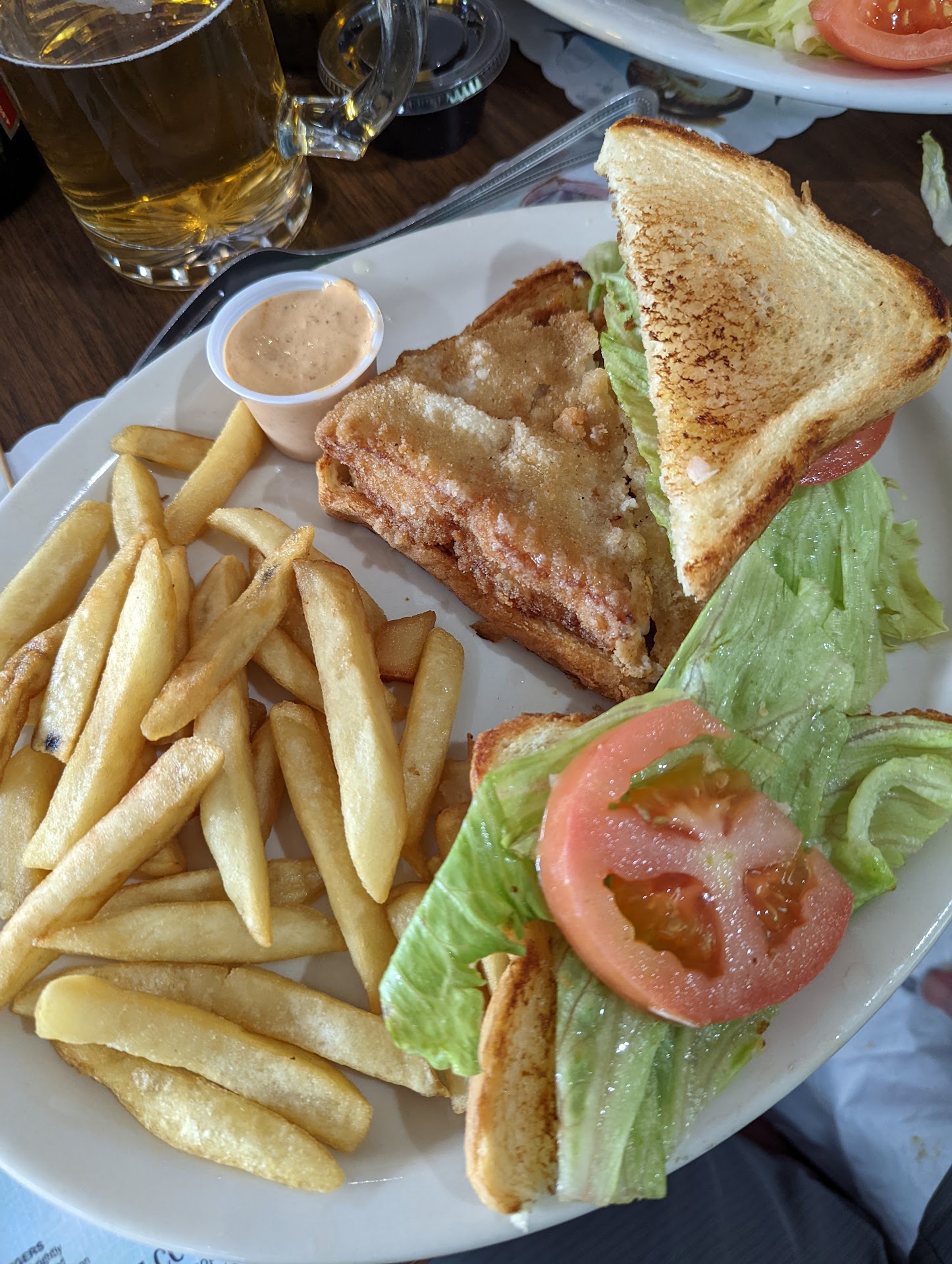 I like this place. It's been in Brownsville forever. I haven't been since i was a kid, and the carpet and furniture are still the same. That said, it's still a nice solid seafood place. Definitely NOT Marisco (Mexican style seafood). It has classics as shown in the menu. We all ordered different dishes to try a few things. We enjoyed all the food. This is small town seafood (and we now live in Dallas for reference), not a fancy place. Simple and small menu. The food tastes homemade which is great. Fish sandwich on toast was good. A real / normal portion and the fried fish was done well.