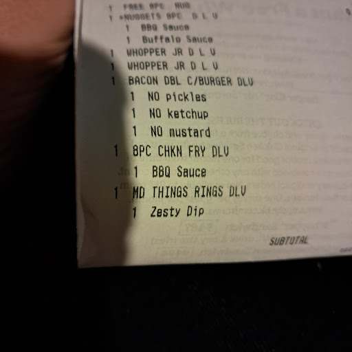 Read moreHave visited the buger king more than several times. Each time I visit this location, I always have a problem with my order. Most of the time I do nothing about it. Just say to my self what do expect its burger king. Then you get to a point that you and many other people are spending money at this restaurant. This last time it just got to me. In the past got ice cold crisaunt. With partial cook hash browns. Went home three the hash browns away had to reheat the sandwich. Other times got order wrong. This time very simple. Two whopper jr. Meals no onion. Simple right. Wrong. Receipt read no onion, monitor no onion. Wrap around sandwich said no onion. Guess what they put onion on the sandwiches. My grand kids cannot stand onions the taste or smell of them. As a result would not eat them. Called the restaurant asked them what is the procedure when order come in. They tell me. Then I asked ok someone had to mark the paper wrap around the buger correct. She said yes. Ok is that the same person that is making the sandwich. She said I think so. So if everything said no onions how and why did onions get on the burgers. She then rudely said verbatim so what do you expect me to do. No apologies nothing. So asked for corporate #. Same rudeness. So I asked which burger does this buger king own. They indicated both in brunswick. Guess what that is the last time I will support either location. Wendy right across the street wonderful compare...