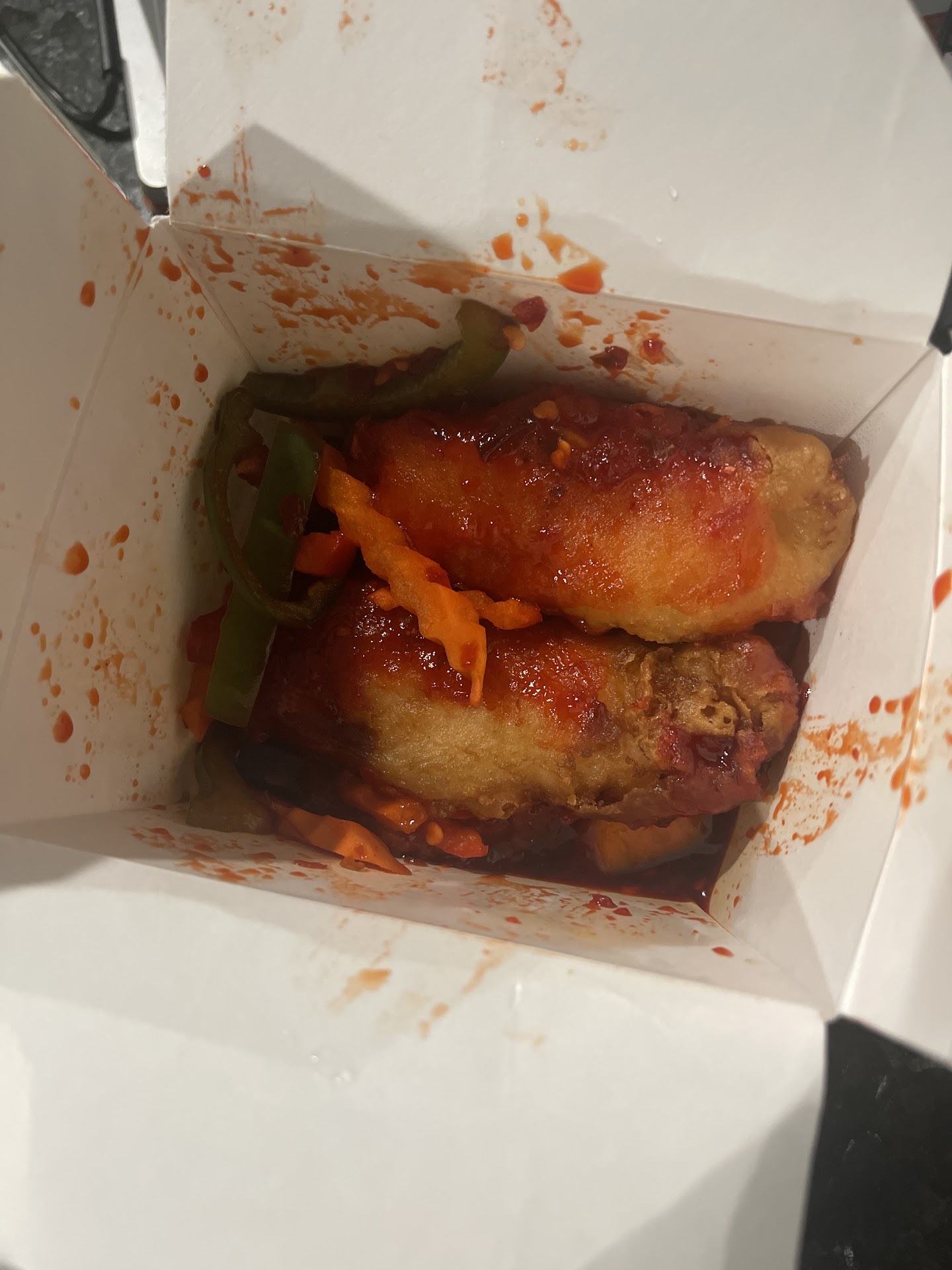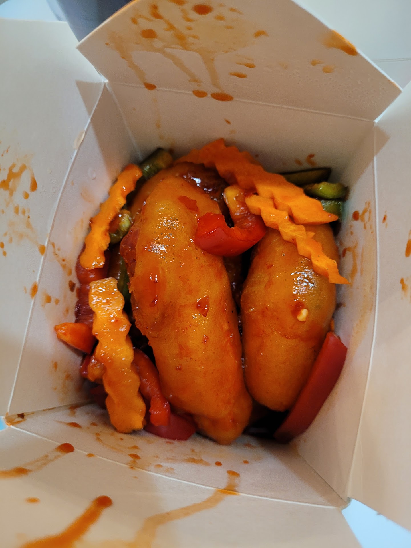 Read moreGeneral tso's & chicken lo mein (no veggies, add egg) Look, I hate, no despise, giving a bad review, and maybe, just maybe, this is a radicalized version of these dishes, but neither of them was recognizable as thier namesakes. I was hope but sadly disappointed. General Tso's chicken is a standard that runs very easily visually Identifiable across most of the nation. Small bites of chicken, lightly battered and flash fried, then tossed in a semi spicy sweet sauce served with broccoli, and maybe little peppers or carrots. As you can see I received nothing of the sort. I was given an order of sweet and sour chicken covered in an unknown sauce and some red and green bell peppers on top. Lo mein noodles are almost always easily Identifiable via texture, color, & scent. This was a container of spaghetti noodles, unflavored. I am very very very disappointed. I will say that my mom's sweet-and-sour chicken was quite to her satisfaction, But honestly neither of my dishes resembled...