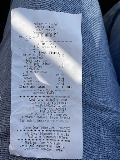 Ā Ā Ā Read moreHad to make a u-turn to get to it because I passed it. Once inside, I see 5 people behind the L shaped counter which also holds ice cream for the combined businesses. There are 2 other customers already inside, waiting to get ice cream. The 5 workers that I see give the impression of being busy. But they haven't done anything that I can tell. One comes up and grabs donuts, shoves them into a bag and hands it through the drive through window. Two others have walked over to the DD counter and noticed me but walked away. One employee finally said that someone will soon be with me around the 5 minute mark. Then she went and helped the couple who was still waiting for their ice cream. So finally someone came to me and I got to place my order. All I wanted was a simple iced coffee, so it was quickly done and I was back out the door. I really wanted an iced coffee, that's why I waited. I think however that the employees in Brunswick have the wrong kind of customer service mentally. Not just at this establishment, but others I've been to as well. It's as if the customer should be grateful for their presence, when if it wasn't for my presence, they wouldn't have a job. I have been in the customer service industry for 20 years. There can be ugly customers. Not all customers are right, and their way doesnt always work. Having a customer wait a long time is shameful to the company. As an employee, you are the face of the company, the representative. I don't think the employees in Brunswick have been trained in...