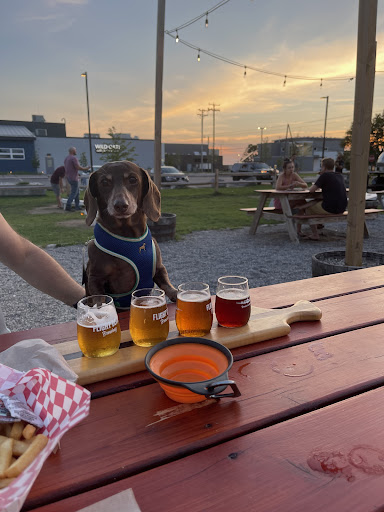 This is a dawg-on good review. If you are a dog parent this is the perfect place. While all the dogs were not the best behaved they were exactly zero dog issues. All the dogs were leashed and owners picked up after their four legged family members. We had Charleyâs Fly By pizza and fries and the taster flight of beer. News flash they also have a doggie menu. More on Chocoâs selection later. The pizza was Smokey and very tasty. The goat cheese was very generous and blended well with the mushrooms and black olives. The finish was a balsamic glaze that was exceptional. A memorable taste that was unique and something I would come back to have again. The fries were fresh, crisp and plentiful. Probably the best fries in Maine. Think Pomme Frits in Belgium, just no Mayo. The beer was a unique experience the descriptors was horrible! I ended up picking by name. So let me try to help you. Remove before flight was a red that was light, fresh and with a woody, leathery complexion that finished with a slight hoppy twang. A guy at the table next to me described it as fruity but he described them all as fruity. So you decide. The second was Space A reminiscent of breakfast and having grapefruit. It was slightly bitter, think rind of the fruit it ended with a pleasant mild almost effervescent finish. Definitely a beer for a hot day. The third beer was Puddle Jumper. I asked three other patrons, here is what they said, it tastes great, it reminded me of plums, and I think it reminded me of roses cut on rainy day after the grass was cut. Wow. I didnât get all that. đđit was crisp and light. It smelled like it would be sweet but it wasnât. Think prickly pear meets strawberries. It had the expected IPA finish with a little something extra. Finally Breaking the Sour was claimed to be a mango guava mash. Two people called it a girly beer, not sure what that means but I thought it was very sour with a robust nose of rip mangoes. I think it is probably the most nuanced of the beers and probably the most likely for people to clearly either love it or hate it with very few in between. Itâs finish was rude and abrupt ending with a pucker. The dog treat was a frozen banana that Choco loved and gave two paws up. This place makes friends out of the patrons. People talked, shared tables and gladly shared their perceptions of the food and beer. There was also live music. But It was kinda depressing. The song choices were not a Friday night fun night kinda selection. But the guy was a good singer and as a solo act he did great. You order on your phone and yes you can use Apple Pay. All in all an...