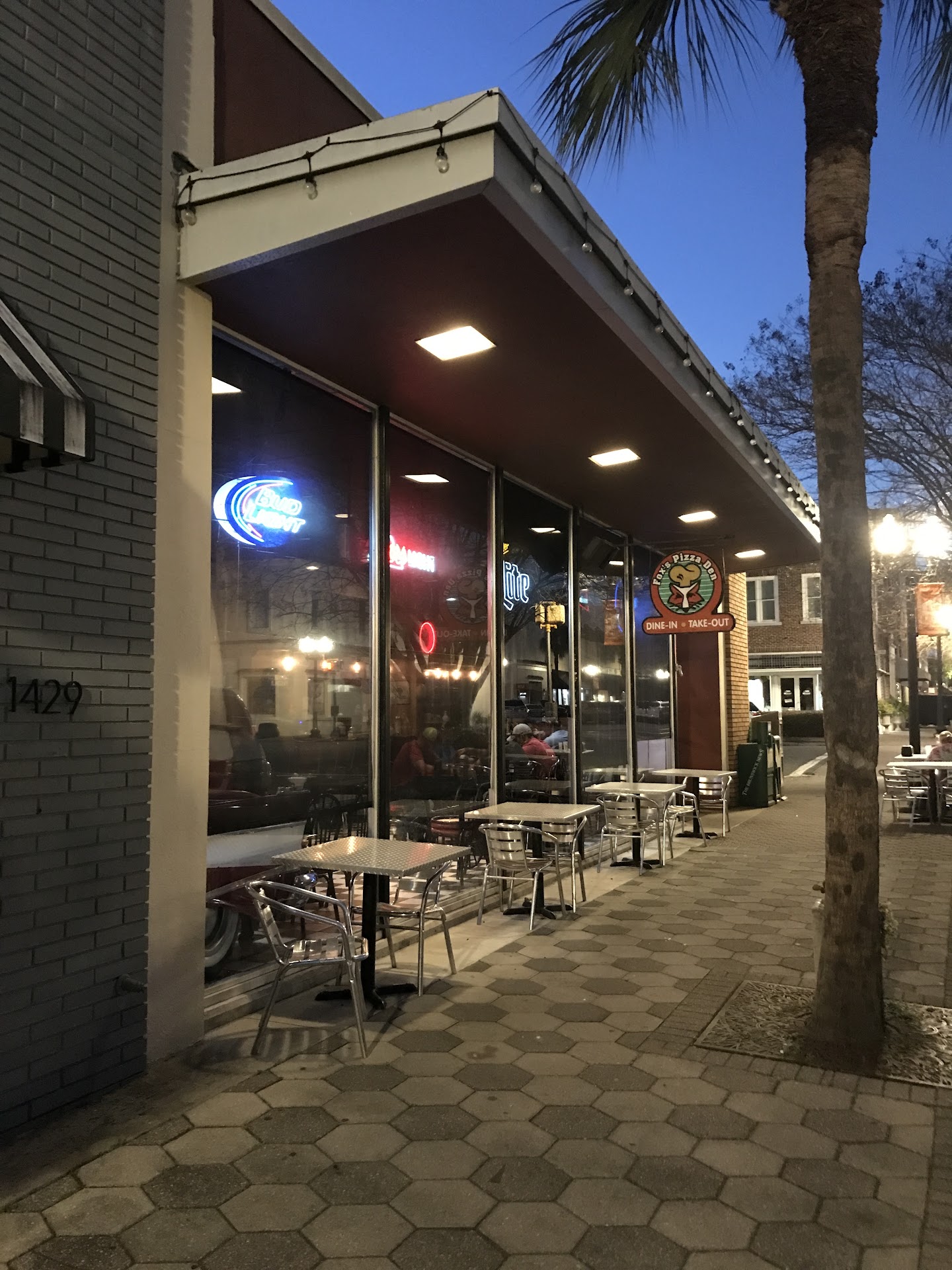 I have personally never heard of this pizza place but I for sure won't forget the name. 🤗 Why is that? The atmosphere is very unique for starters. This particular place is at the beginning of a strip mall with many different shops around in the heart of an older city with narrow streets. I really liked the outside seating it was quaint , quiet ' and a great place to have a meal. Then I opened the front door to see a long counter from a 1950's ice cream shop with pictures of musicians in the early days like 60's to the 80's. It was fun to go around and see all the different artist in the early days. Then I turn to the left to see an eye stopper of the restaurant at the end left corner. I see what appears to be a old car cut into a seat with red appolstry. I'm not a car expert but it looked like a 1950's car back that might be a Buick but don't quote me on that. 😂 it's been a minute I was there. I was quickly seated along with a friend in the back by a friendly staff. After going over the menu I asked the waitress about being gluten intolerant and options. She looked at me and says I am gluten intolerant too and we got you covered. I was shocked 😲 but happy to find a restaurant that gets me and caters to people like me while on vacation. They have a great gluten free crust that I personally went with the BBQ chicken that was absolutely delicious 😋. I really enjoyed it but make sure you have knapkins handy cause it's a mess and really good. My friend got a regular pizza with fresh vegetables and meat. She said it was very tasty and delicious too. After taking in the atmosphere, food, the staff I can honesty recommend this restaurant if you are in the area or just passing through like me. It's is well worth it and not far from St. Simon's Beach or Jekyll Island. Following as I continue crossing this great nation doing one review at a...