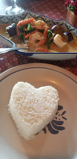 Read moreWow! Go here. Thai is our favorite. We were just passing through on 95. We are from Miami. I can safely say this place is on our top 5 thai foods that we have had. We have been toots of thai places, especially in south Florida. The food here is soooo yummy. They had level 1 to 5 for hotness and my husband, as usual, got thai hot. He said 6. They made his pad thai right! It was super spicy like he wanted but oh so tasty Lots of flavor. You could taste the peanuts and the egg and scallion and chicken. I think they use dry spice ( instead of just adding a ton of hot oil which changes the flavor). I had a fantastic green curry served in a lovely fish shaped dish. The tom Kha soup was fresh and you could taste the lemongrass and lime. I wish I lived closer. I'd go every week. For dessert we had super yummy fried banana with honey sauce and sesame seeds. GO HERE! BEST THAI...
