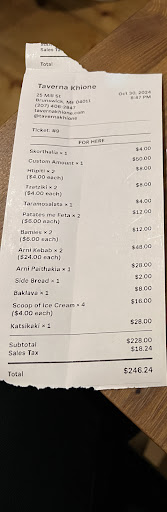 Vibes: Bad and broken. Taverna Khione is an exceptionally small restaurant. I say that because it was readily apparent that despite having a reservation, we were not welcomed there by either the restaurant staff or the clientele. Immediately we were greeted by a very rude woman who sat us seemingly against her will. She then proceeded to take approximately ten minutes to return with water for our table despite the fact that we were one of only three parties in the restaurant. Then went a coworker showed up, we asked politely to move over an extra chair so our friend could join us. To this, we were met with a very curt response of “we don’t do that here, you’re going to have to sit at separate tables.” Stunned. After a solid 60 seconds of awkward silence, we complied not knowing what else we were to do. Now I’ve been to restaurants ranging from Michelin Star French dining, to pit bbq shacks on the side of the road and no where has a restraint ever presumed to be that far over their guests that they would split up a cohesive group because another person came into the equation. The audacity that these people showed by placing themselves over the dining experience of their paying customers goes far beyond words. As a restaurant manager myself I would never in a million years expect one of my patrons to do something they didn’t want to do in my establishment. That interaction, mixed with the staffs reluctance to engage us in any and all questions, serve us in a timely fashion, and treat our party with any modicum of respect is indicative of an establishment that truly thinks they are better than everyone else simply because they have the market cornered for Greek cuisine in that particular part of Maine. It is a fallacy for them to assume that because they are the only upscale Greek restaurant that they are also the best Greek restaurant. They are bottom rate at best and should be avoided at all costs. I would recommend that American Express and Opentable conduct investigations into their business practices because they seem like greedy and ill mannered people who only seek to prey off the good graces of tourists and casual passersby.