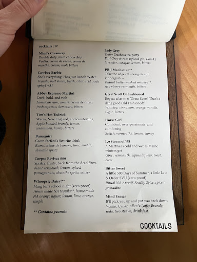 OH, NO! BIG NO, BECAUSE THIS NOISY PLACE MEANS YOU HAVE TO YELL TO HAVE A CONVERSATION!! The atmosphere would be PERFECT if not for this well-known, cheap gimmick to blare loud music to make customers stress out so they can order more alcohol and salty snacks. THE PLACE IS MOSTLY EMPTY BECAUSE THIS IS NO RELAXED PLACE FOR A DRINK, DON'T BE FOOLED. Seadog's Restaurant does the same thing, and now they hardly have any regulars - a place that seats 100+. The loud music gimmick is why. And unfortunately this beautiful place with a spot-on concept is doing the same thing. Just look at the faces change and soften when someone demands to turn down the music. The table of five next to me has asked twice. And whenever it's lowered, people look relaxed again, even the staff. Turn it up way, way high with a club beat and watch the glazed, unhappy looks. Just like Seadog's. Most people will stay away from this nasty acoustic setting. It is no place for a memorable date. Too bad for The Abbey. It is so promising! But no authentic speakeasy would ever have pounding music and a big echo chamber in the seating area with no sound buffers. This place will rely on tourists and one or two time customers. Then what? Like Cool As a Moose, it will stand mostly ... empty. Food is good, staff is outstanding. And I do feel sorry for the staff, both for the loss of business and their obvious sheer discomfort! The customers look visibly worn out by the blasting music. Maybe this is just the place for a few customers to get stressed out and get smashed. And then what? Will this concept carry the business? That concept can't possibly be what's going on here, with these high menu prices. Good luck and so long for now, Abbey. UPDATE: Owner reached out with the nice note below. Excellent, but you could just lower the volume...