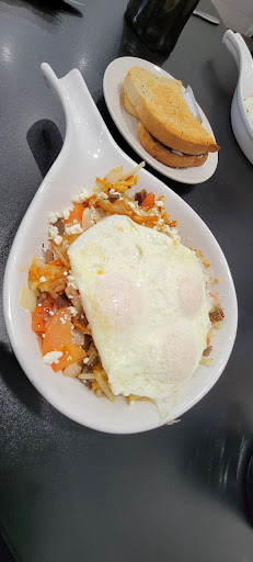 I got the Greek skillet and the presentation was wonderful. The eggs were great and I feel like they are high quality eggs and were cooked as I had asked, the rye toast was really good, and the portions were not overwhelming. However, overall the dish seemed to be lacking in flavor. Beyond the eggs and very small pieces of gyro, I felt like there was no flavor in the dish. I think the Greek skillet would be better if maybe there was tzatzki on the side.