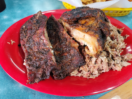 Read moreI usually rate a restaurant a star in each of 5 categories : taste, value, portions, location and quality of service. Unfortunately I can't give this place more than 2 stars. Perhaps I came here at the wrong time of the wrong, by my personal experience here wasn't great. This place was packed, which often is a good sign, but not this time. We had chicken, pork and the country fried steak, since they ran out of ribs at lunch time. The value and portions were really good, if you don't mind a bad lunch that is. The chicken was incredibly dry and cold, the pulled/chipped pork wasn't cold but was dry and flavorless. The country fried steak was the best thing we had, but even that was generic, like the best value brand at Wal-Mart. The battered fries weren't bad, but I really can't say they were good either. Coleslaw had no dressing. It really made me sad to dislike my meal here, usually I'm all about mom and pop places, but I simply can't understand what people see in this place. Like I mentioned previously, The only things I can highlight were the okay prices and the decent portions - as long as you don't mind...