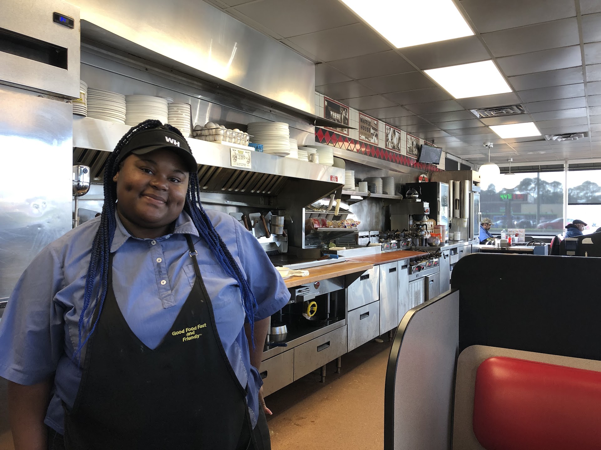 Great Waffle House. We had the Texas Bacon Cheesesteak, cheeseburger, and chili. Everything was made in front of us and arrived hot and tasty. Our server, Takiah, was professional and courteous and made our visit enjoyable. One of the pleasures of a Waffle House is the old fashioned soda counter vibe and Takiah and the fabulous cook only made the vibe better. It was also fun to sit and watch the busy street from the big glass walls. Quick, tasty and fun. We...