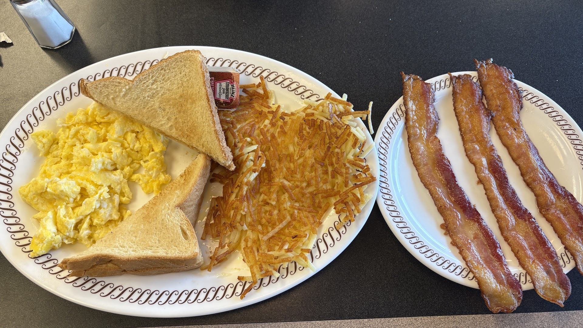 Ā Ā Ā Read moreTerrible service. Waitress took our table apparently 20 minutes before her shift was going to be done so she was rushing us the entire time. We were the only customers. Waitress had given us our tickets and disappeared right after giving us our plates. Sausage and bacon all overdone. In my grandmother's words the sausage patties were like 'hockey pucks'. Hashbrowns undercooked. Waffles burned to almost smoking first, then undercooked next try so they stuck to the iron and ripped apart, finally on the 3rd attempt they were good.