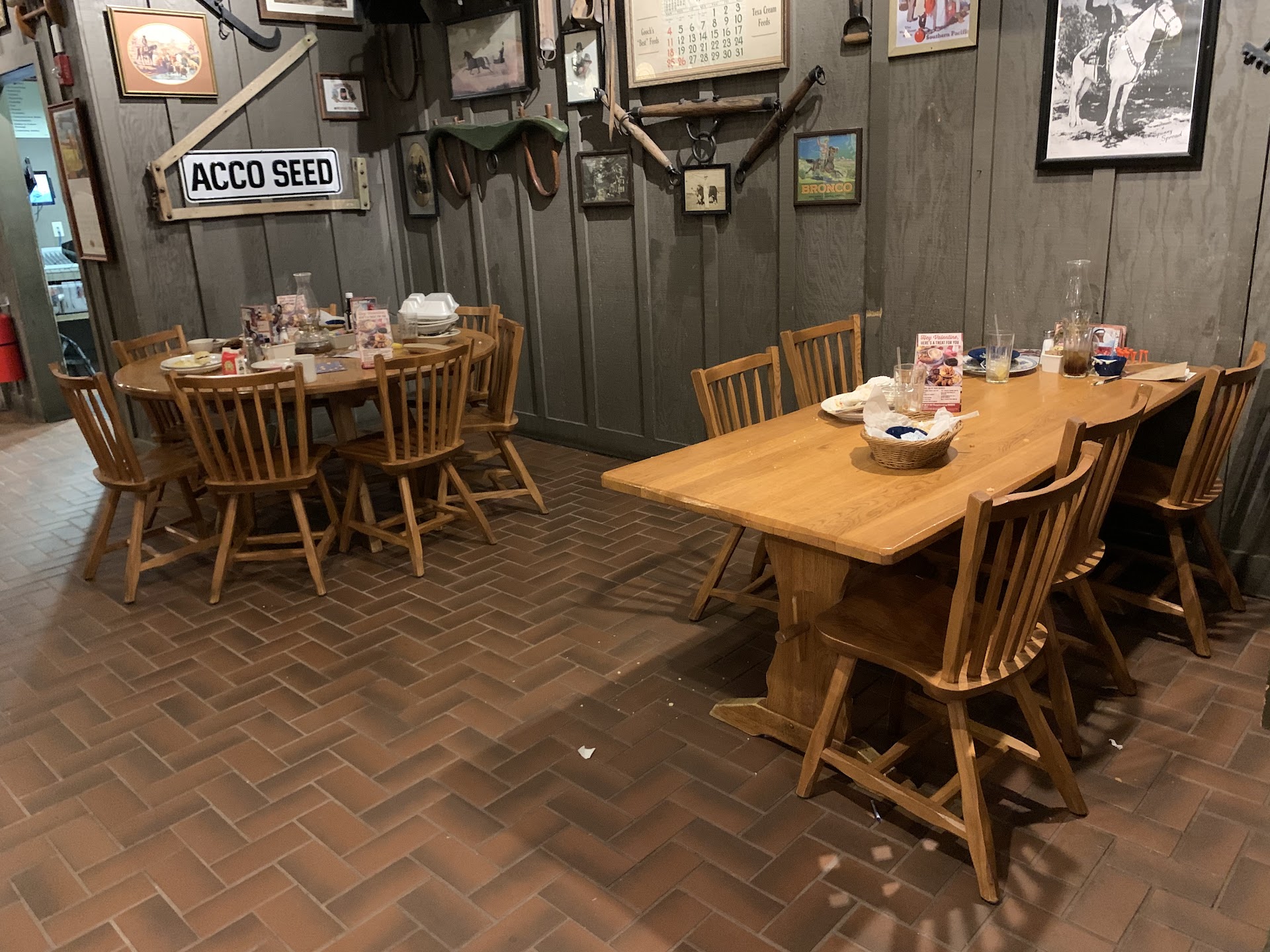Read moreThis Cracker Barrel let me down hard! 45 minute wait just for them to shove my party or nine around one of their small round tables. I noticed the host take in our dismayed body language and bolt. It didnât take a genius to look at our party and see the issue. When I flagged someone down and asked if they could provide us a different accommodation they made every excuse not to. First saying they didnât have enough tables in a single servers section. When I pointed out that two servers could easily serve a party or 9, (common practice, even at Cracker Barrel, I used to work there) she shifted track to not wanting to turn two of the specific row of three tables I was pointing at sideways. She said our only option was to continue to wait for one specific party or two to leave. Despite having tons of options, even one immediately apparent one, this was the only option she gave us. Since one of our party was on lunch break and we already waited a considerable amt of time, we just decided to deal with it and not push the issue. We did our best, and wound up taking 7 out of 9 dishes home because we were to cramped to really enjoy the experience. I personally was sitting sideways and turned toward the table and many of us were scooted back to far from the table to accommodate each other that eating wasnât worth the hassle. Even reaching for our staggered pushed away drinks (to accommodate the food on the small surface) was cumbersome. All in all, it was the worst experience at Cracker Barrel I ever had. Itâs a shame really, I feel like with a little less laziness and a little more creative problem solving, it would have been rather enjoyable. Needless to say, we...