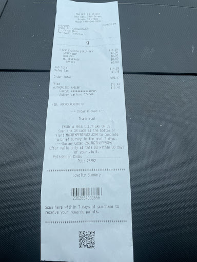 Read moreI went here a few days ago they have a new cook by the name of Devin Jackson. He gave me excellent service I hope they are paying this guy well I would love to have him at my business. I spent a good 76$ at the 3507 E 29th St location in Bryan tx I ordered steak fingers, chicken fingers, and several burgers with ice cream and drinks as well. My food was hot and delicious!! I will be coming here for now on and bringing my family as well. He even went out of his way to make sure I had napkins and ketchup as well even when I couldn’t get a response from the cashiers in the front. He overcompensated for the store in general and makes this business look really well. I saw him moving and making food all by himself and there was allot of people coming in I hope he doesn’t over work himself. I loved his work ethic and decided to leave him a generous tip for his hospitality. I’m greatly appreciative thanks Devin! And...