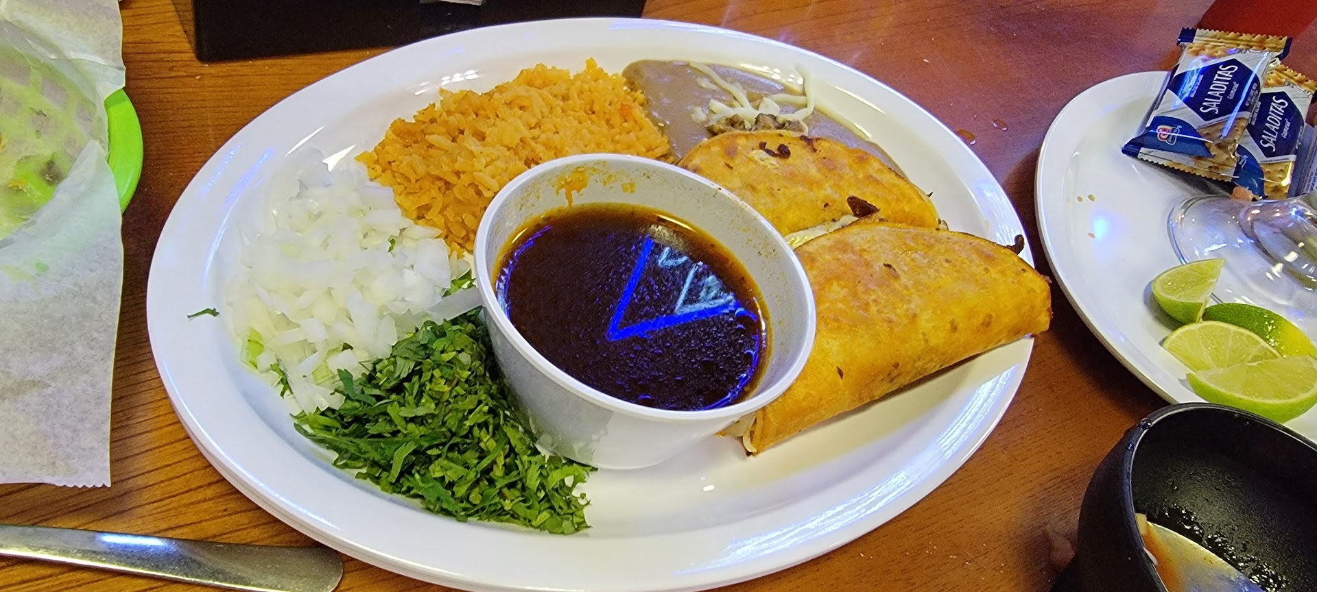 Really can’t complain about the prices but I guess you get what you pay for. Salsa was bad, chips were awesome. Our waitress was friendly but didn’t seem to have much of a clue of what she was doing. She took our orders w/o writing any of it down (not too uncommon but we made note of it being surprised as we both work as servers ourselves). When the food came out (having ordered about 6 tacos total) half of it was wrong when we checked the tacos. Being hungry we just tried what we got - not too mention she forgot to bring us limes and salsa which is normally served with tacos so we had to get that too. None of the tacos were great - oddly enough the Birrias were the worst. They were horrible! I couldn’t even finish them and I’ve loved all birria tacos I’ve ever had. My gf is literally from Mexico and was as turned off by the food as I was - simply not good tacos. To then give it one more shot we ordered a ceviche tostada. It tasted like nasty, refrigerated fish - it’s was disgusting! I normally like ceviche tostadas but am slightly more picky than my gf who loves all mariscos but we couldn’t even take another bite! We’ve never had such a bad experience eating out! Left to end on a good note getting dessert else where. Really cheap food but...