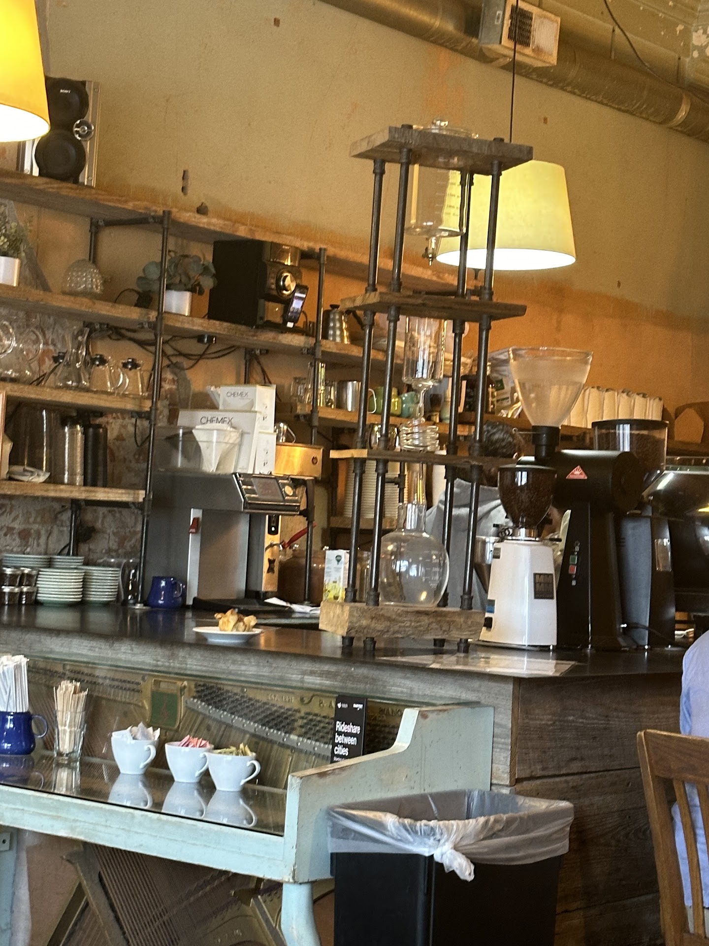 Read moreAtmosphere: Only reason why it gets 4 stars and not 5. I get it, it's a hipster joint, but the furniture looks like stuff they picked up from the side of the road where someone was throwing it out. There's buckets of construction materials next to a table which is next to the bathroom. I like the other aspects though: bar to look out the window and people watch (need more stools for this), cool lighting, great display of their cold-brew system and a piano counter thing (?) that's neat. Just needs a bit of finishing up I think.