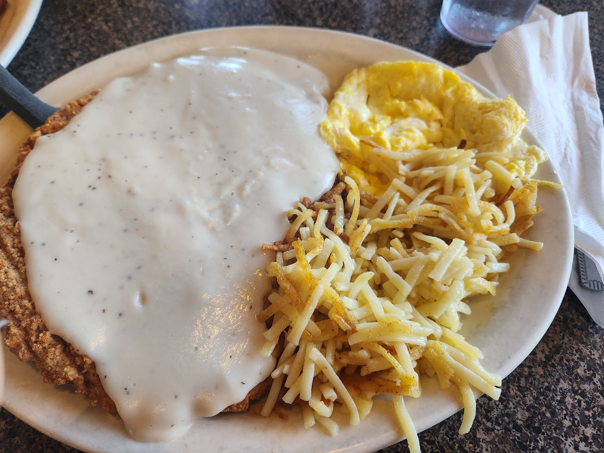 Read moreI’m so sad that I have to give this place such a low rating. We stopped to eat here randomly expecting a home cooked country meal and were very disappointed. The food is very over priced for the quality. My boyfriend and I both got chicken fried steak and it was the worst we’ve ever had. It’s very obviously pre-breaded, frozen patties. Absolutely no flavor in any of the food. My green beans were 100% flavorless, it was like eating them out of the can. The mashed potatoes are instant and so low quality that they felt powdery in my mouth. And they serve boxed craft mac n cheese, which is good by itself, so I’m not sure how they also managed to make it taste like nothing?? There was only one server working the entire restaurant, so service was slow. Very obviously understaffed. Maybe their breakfast foods are better, but we won’t be back...