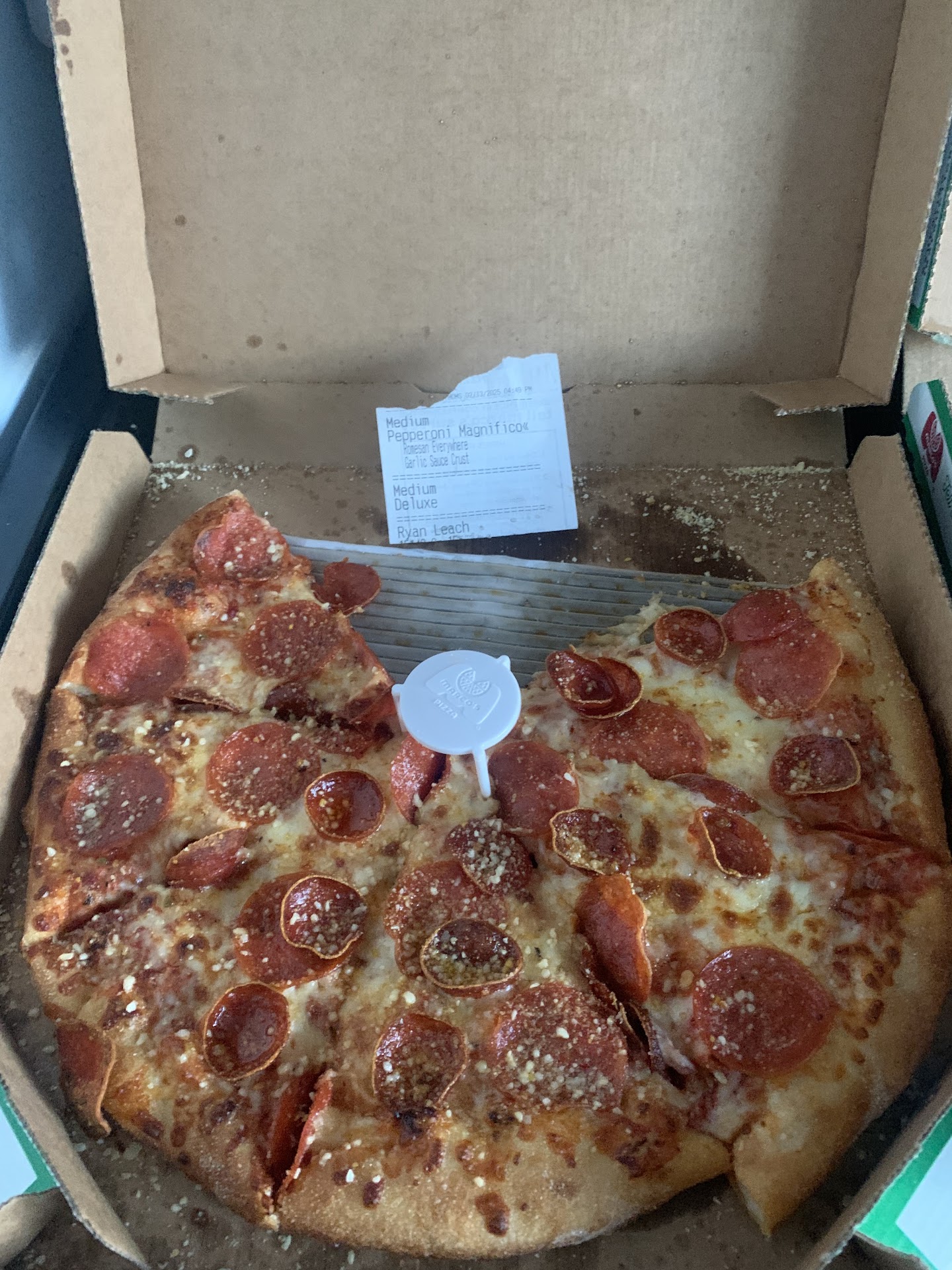 Read moreThis was my first time trying Marcos pizza...I ordered a pepperoni and mushroom extra large 16" pie with the standard crust and it was very good..plenty of sauce that was tangy generous amount of mushrooms, burnt pepperoni edges that added more flavor plus I liked their 3 cheese blend..the staff was friendly and they handed me my hot pie in 20 min...it was a really good pizza. It's a better tasting pizza than donatoes...if you have not tried a Marcos pizza I recommend you do try it, if you do I think you will agree you will taste a better pizza. Marcos is my new place for pizza when visiting...
