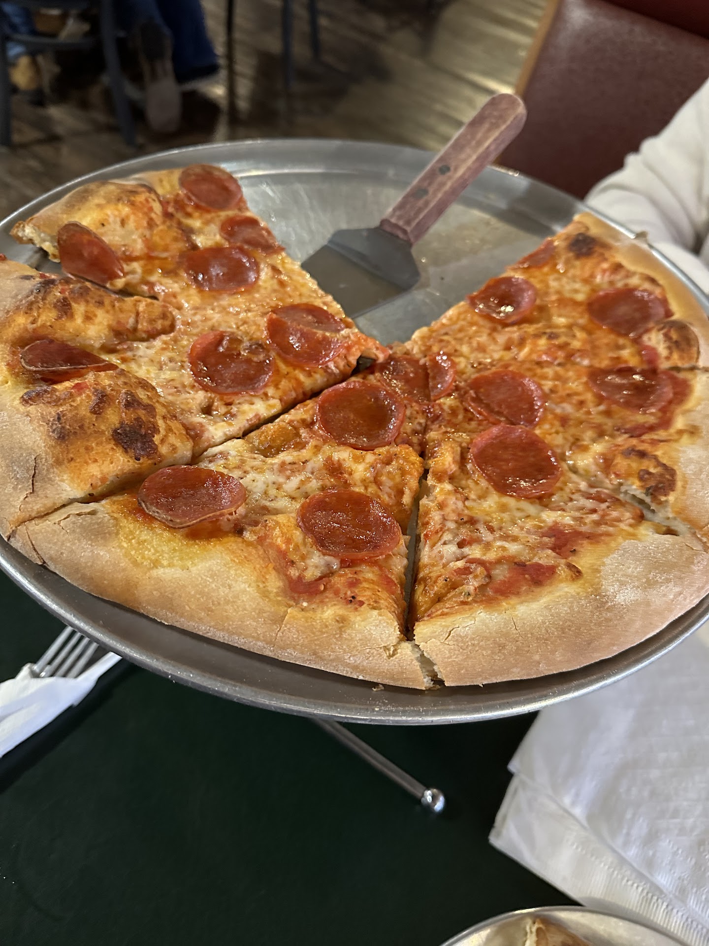 The pizzas we ordered were brought according to what we asked. The time we waited was ok. The Margherita had really good dough, but in matter of taste, we have tried better ones in other restaurants. The Philly steak pizza was really good (dough and taste). When we were finishing our meal, the lady came with the payment terminal and asked if we were ready for the check, again we felt kind of rushed. She didn’t offer a pre-check, just gave us our total and my husband handed the payment. Afterwards the check was brought and boxed the remaining slices.