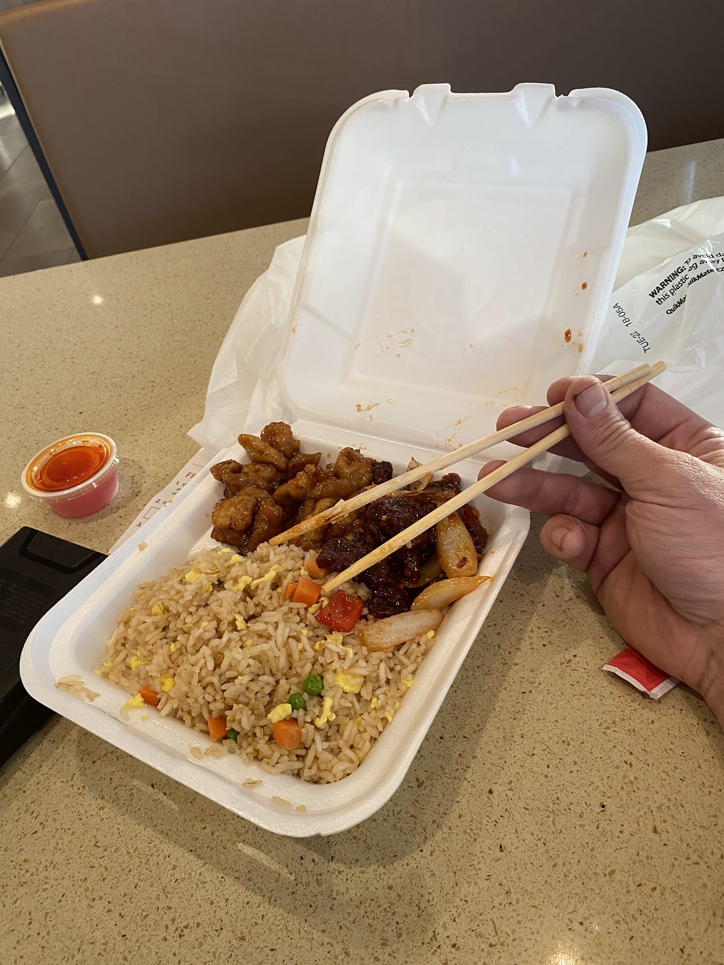 Read moreI just went through the drive thru at approximately 4:30 pm I am not a regular fast food visitor but I am a FOODIE. This place was horrible. I decided on a bowl because I was not sure how it would be. I ordered the beef bowl, I wanted a spring roll because it wasn’t fried and the lady said it came with 2 egg rolls and before it got all discombobulated I said fine just give me that. The story is….. it was in edible, the meat was like freeze dried it was so over cooked probably from 11:00 am my 7.50 drive thru cost me 11.25 they didn’t give me my spring roll but they charged me for it TWICE. This is precisely why I make my own stuff. It’s good to test your own immune system once in awhile. Worst food...