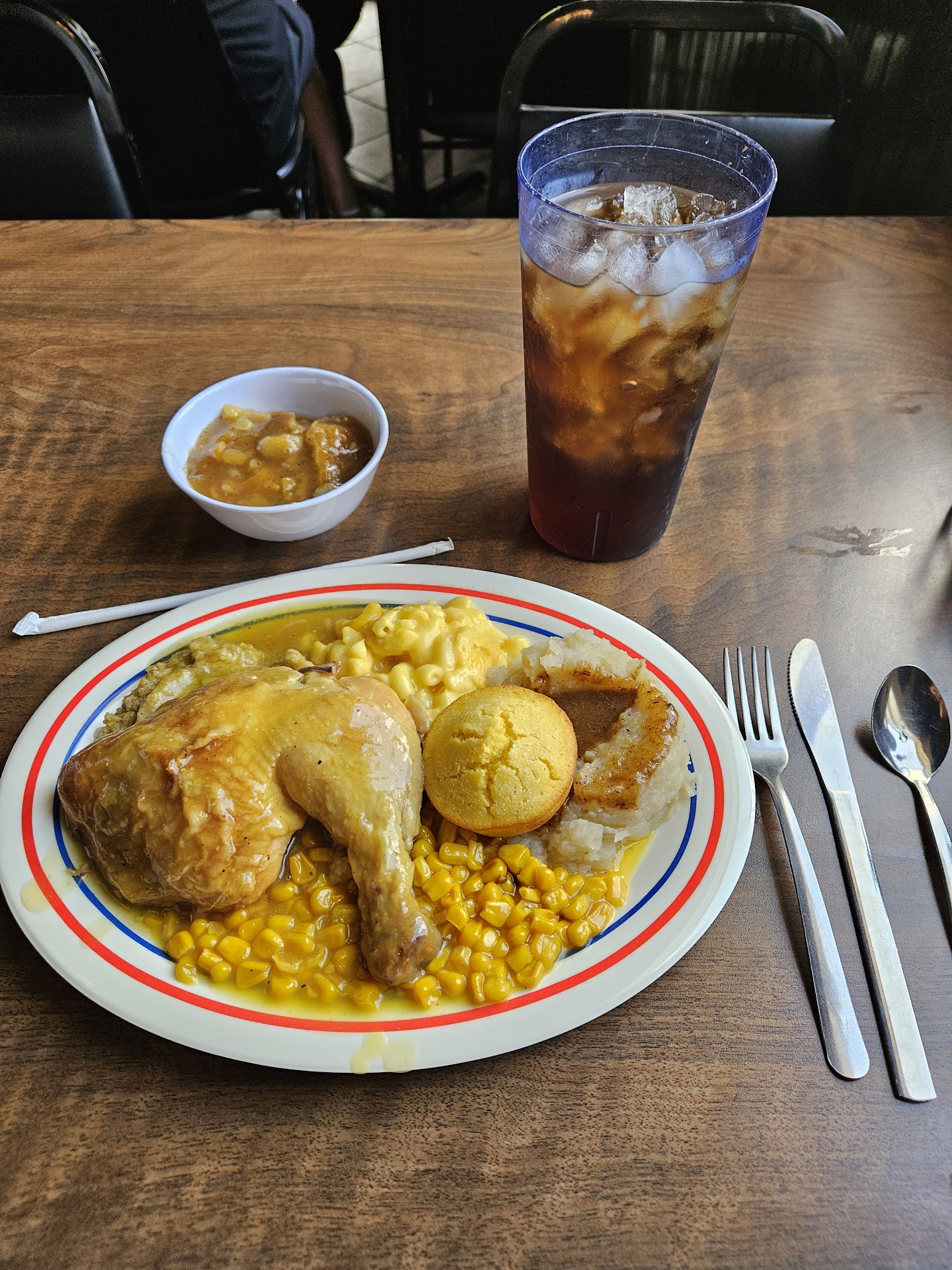 Read moreChicken and dressing on Thursdays is the best thing I ever get here!! Service has always been slow, bc the line help is feeding the drive thru and if inside, you're last to be helped. Ambiance: you'll hear a lot of back and forth bickering and complaints from the cooks, but it doesn't matter- because the food is so delicious. It always tastes like someone's southern grandma just put her love and soul into the plate of food you're eating. Dessert Cobbler is always on point, too. Love that the new place is big, clean, and air conditioned; it sure is an upgrade from the old...