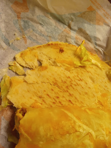 I rate this place a ZERO. The food was spoiled , when we took it back to exchange they said we had to order online but we didn't have to pay til we got there- a LIE and then because the online order wasn't able to be completed ( due to their technical problems) we were denied our new order and was given NO REFUND and charged my bf for the order THEY chose to give us which was a very slim dorito taco ( basic not the Supreme God forbid) and some other thing that I've had to have my animals go and trek and find out what the he'll it is I'll include pics but I can tell you there's no substance in side and the door cream is rotten and the cheese on the outside of the taco was glue to the shell and cold and for the double decker feature of this thing the sour cream smelled and tasted a putrid kind of smell like when some one throws up. The bread is nevermind I'm just post pics and still have yet to...