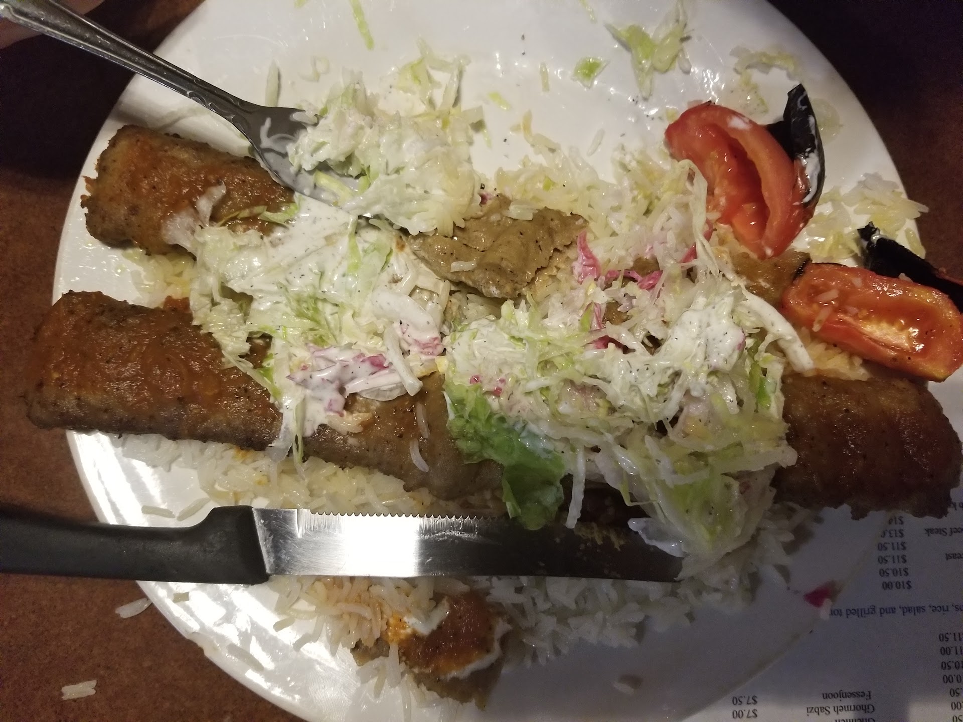 We ordered the lamb kabudeh and chicken plates. The food came out in about 15 minutes and was absolutely delicious! Our plates didn't have a single grain of rice left on them when we were done, and my boyfriend enjoyed it so much that he decided to order not one but two more gyro wraps before leaving. It was so good that the next day, I stopped to grab two more wraps on my way out of town.
