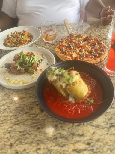 Me my husband and sister in law came to eat last night and it was awesome!! First of all, it’s super cute and decorated nicely. The way the inside looks and the attention to detail they focus on with the dishes we expected it to be super expensive but it wasn’t! We were pleasantly surprised that our bill was a lot cheaper than we thought it would be everything is very reasonable. We got a small complementary basket of spiced popcorn, it was amazing. The flavor was great and it had just enough spice. We ordered the bread basket to start, it comes with five different types of bread and a sauce to dip them in. Each bread was hot and tasted freshly baked, we finished it all and wished we had more! For entrees me and my sister in law shared the butter chicken ravioli and the palak pizza. They were both soooo good, especially the pizza. It really have a brick oven taste and all the ingredients tasted super fresh. The raviolis were hot and cooked perfectly, the inside is more of a ground chicken than a shredded chicken which I liked because it was easier to cut, each ravioli is like the size of my palm. For people who are less adventurous, they do have more conventional pizzas and pastas! My husband is picky but he had a lot of options to choose from, he got a regular pepperoni pizza and he loved it. We were so full but couldn’t pass on trying deserts. We got the Raas Malai mousse and the mango mutka. The mango flavor was super fresh and it comes in a super cool clay pot. The mousse was amazing, super light and had paneer folded in, the “cup” was made out of chocolate so it’s all edible which is so cool. For the quality and attention to detail they put out, it was so much slower than it should be. I’ll definitely be returning, I’ve already told my whole family about it. If you’ve never tried this place, you should. They deserve so much more...