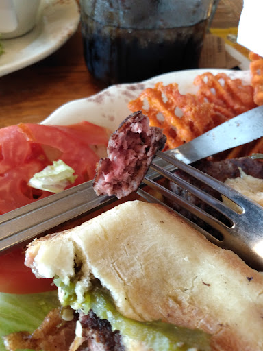 Read moreWe showed up, no greeter at the front. Long waiting list for sure. I overheard there were only two servers but I saw at least two other young ladies there serving drinks and the other sitting at the bar rolling up silverware. The waiter Tritton and greeter were nice but the food was just meh. The mashed potatoes with the roast beef was okay-ish but when we got our plates you could tell the plates had been sitting a while, the gravy on both plates had the dried coating (from when it cools). And what's with the tomato slice on lettuce with the roast beef meal? Is that garnish? Waste of food. The cheeseburger was medium rare, when cut in half and squeezed I noticed blood coming out and it was still pink in some spots. I prefer my meat fully cooked because I don't want to get food poisoning. I asked for the burger to be cooked well done, so Tritton took it back to the kitchen and who knows what went on in there. I got the burger back 5 minutes later with the same squished buns (from when I squeezed it the first time) but this time with a couple packs of mustard and a pack of mayo. Wow. It looked like the chef or someone just took it apart to take the meat out cook it again and put it back? I don't know. I squeezed it again and it seemed okay, but when I pulled it apart into pieces I still saw blood and pink spots. First of all, it should've been tossed and a fresh burger meal should've been served. Second, we shouldn't have been charged for such a disappointing meal (since I got the same burger back). Gross. I wouldn't recommend a burger from here or their food, unless you like mediocre food and super long waits. In all my years of cooking, I'd be so embarrassed to serve something like that to a customer. We definitely won't be back and don't recommend this restaurant at all. We are very disappointed but Tritton and the greeter were friendly. So that's why it's two stars. Would've been one star really. For $85, you'd think the food would knock your socks off, not have you running for the restroom because you lost your appetite. (Barf). -food...