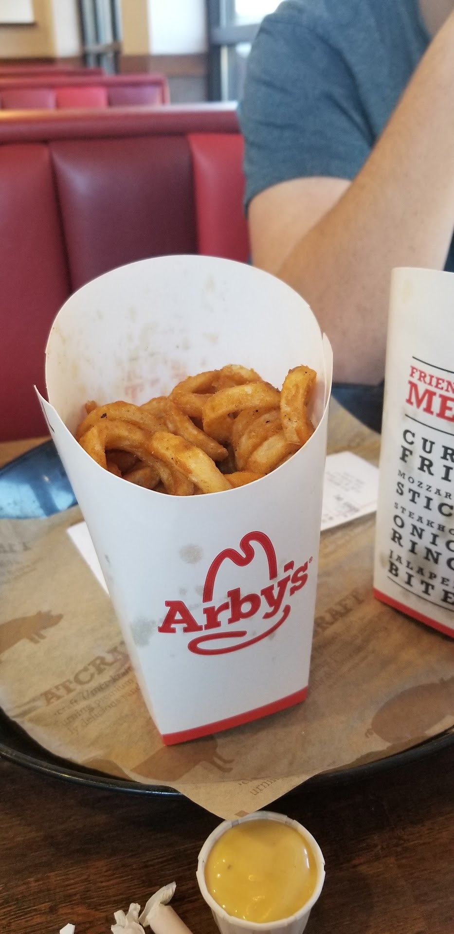 Read moreOh, Arby's, do you have need some work. I'm a very patient individual, most of the time. Ordered a kids meal, the number 13 and an Andes mint shake. They told me that it would be a 10-minute wait for the shake. Okay cool, so they give me my order and my shake, but the shake is wrong. I wanted the Andes mint shake, not plain mint. No biggie. So, they said it would be another 10 or 15 minutes go ahead and pull up front. Okay cool. Eating my jalapeno bites and I don't have any dip and nor did they asked me if I wanted any. Okay cool, whatever. So, about 15 minutes go by and I see people getting shakes in the lobby so I walk in and ask for my shake. He gave me a shake, but it was wrong again. It didn't have the chocolate in it, just the mints on top. Whatever, I'm just going to ignore it. Not a big deal. I get halfway home and my fire roasted Philly is just meat and cheese. Nothing else on it so, I had to turn right back around and go get the right order. get home, the fries for the baby are upside down in the bag and his ham slider is nothing but the hard grizzly butt into the ham so it's too hard for him to even chew. Now they weren't that busy. They had no one in front of me and maybe two orders behind me and one person in the lobby. Every time I go to Arby's there is some sort of mix-up. Also, lay off the...