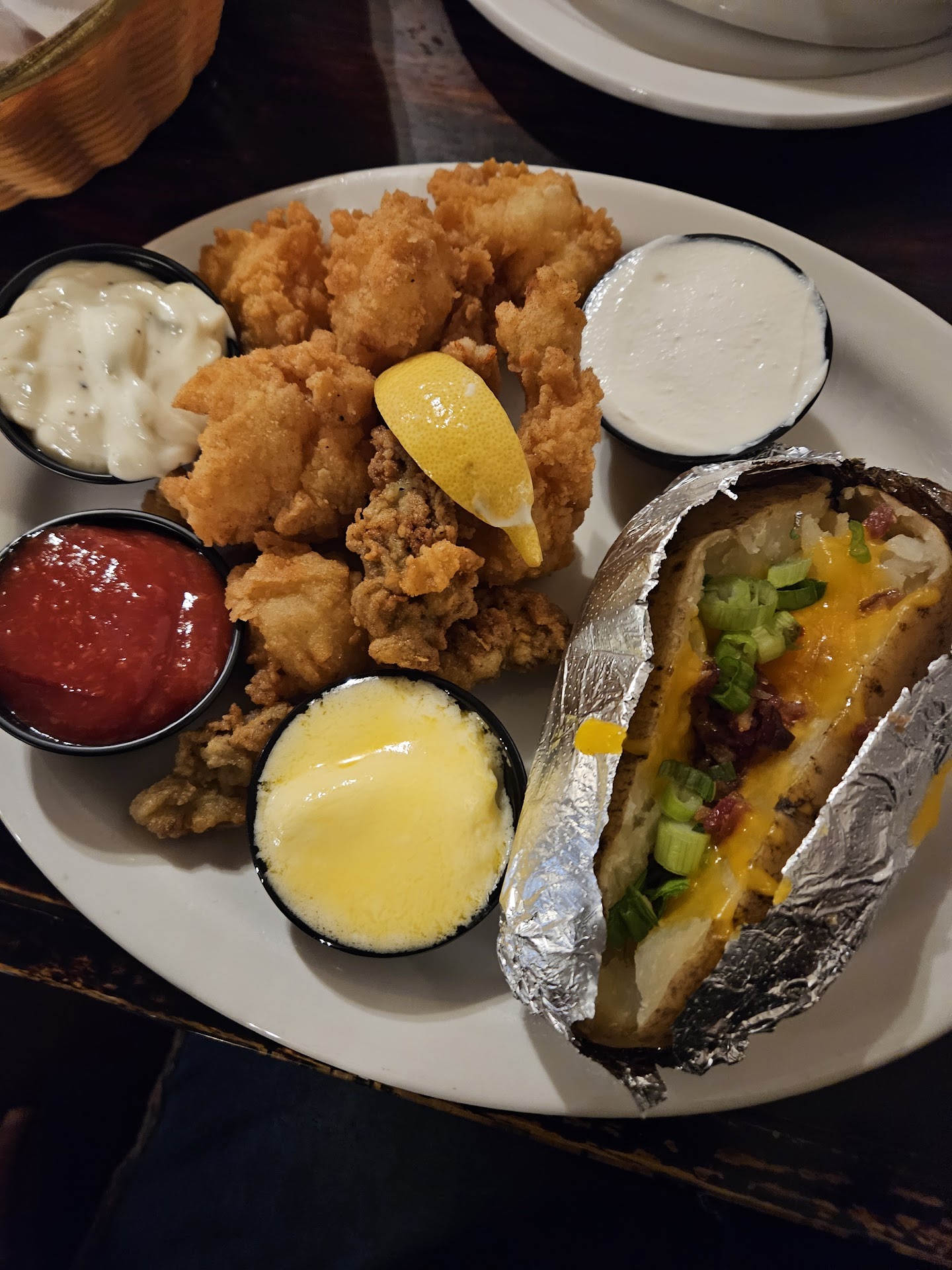 Our family (4 adults, 2 young kids) visited here while on vacation for the weekend and had an awful experience. The hostess Katelyn first estimated a wait time of 15 minutes ā not only to our group but at least a couple of other groups that walked in around the same time. Instead it took over 30 minutes before we were seated (it's a tiny space). We had to wait for another 10 minutes for our waitress Amber to come take our drink orders. She did arrive back quickly and took our food order, and we luckily didn't have to wait too long for that to arrive. We were disappointed to see that the kids' menu fried shrimp meals for both of our kids still had tails on the shrimp ā not exactly edible to a toddler, so we had to take extra time to cut these off. The side salads were surprisingly full of a variety of good vegetables and a nice portion size. The crab stuffed mushrooms were dripping with excessive oil, but very tasty. Things started going from "meh" to worse when our waitress completely abandoned us (and was nowhere to be seen in the restaurant) for at least 30 minutes. One of our kids was so tired from waiting so long and understandably wanted to leave. We got the hostesses' attention and told her our waitress forgot about us and we needed drink refills and the check. She seemed surprised and said she would help us out, but then she also completely ghosted us and left the building (or at least the dining area). We were all extremely annoyed at this point, and it didn't help that there were two young (~6 and 8 years old?) kids in the restaurant who appeared to be related to a staff member. She proceeded to yell at them loudly for everyone to hear, and then also had them BUSSING TABLES AND WORKING!!!! What kind of illegal racket is this place? I lost all patience, walked to the kitchen to get anyone's attention since Amber and Katelyn were still nowhere to be found and a 3rd older woman finally saw me after a very long few minutes and I explained our situation. Her response was "no one told me you were waiting" and she tried to help. Amber magically showed up a minute later and also said "no one told me you were waiting" and had a terrible attitude. She never apologized and simply said "I had to fill 2 to-go orders" which never explained why she ignored us for over 30 minutes. I can understand that staffing challenges and food supply issues are prevalent now more than ever, but this complete and utter lack of service was unacceptable and ruined our family member's birthday we were trying to celebrate. There wasn't even a manager present to talk to about our issues at the time, which came as no surprise. They should be reported for ignoring child labor laws and train all of their employees to have better common sense and courtesy! Do yourself a favor and go anywhere else besides this...