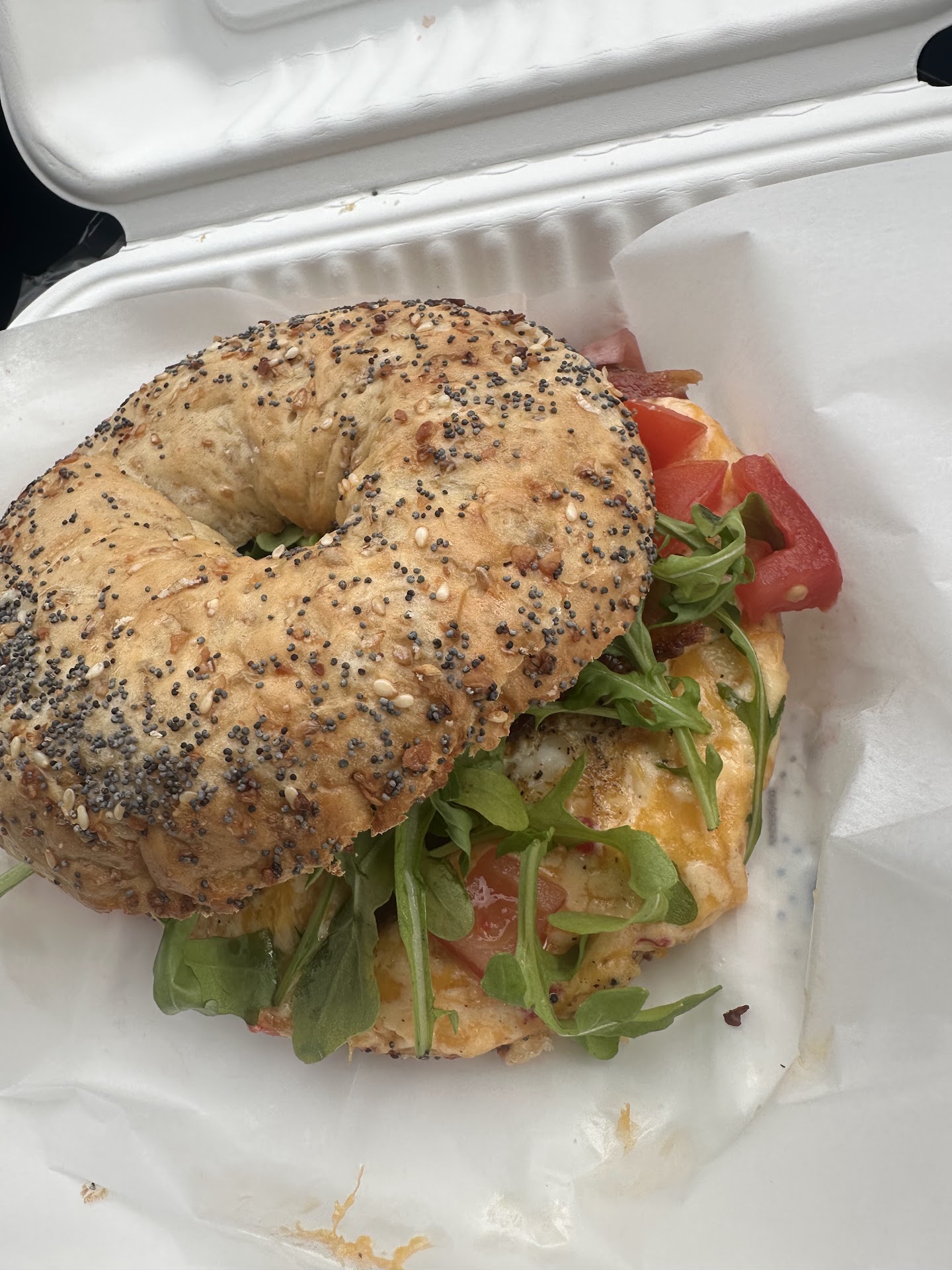The food is good. My sister loved the grits. My daughter liked the bagel sandwich. My grandkids really liked the double chocolate muffin.