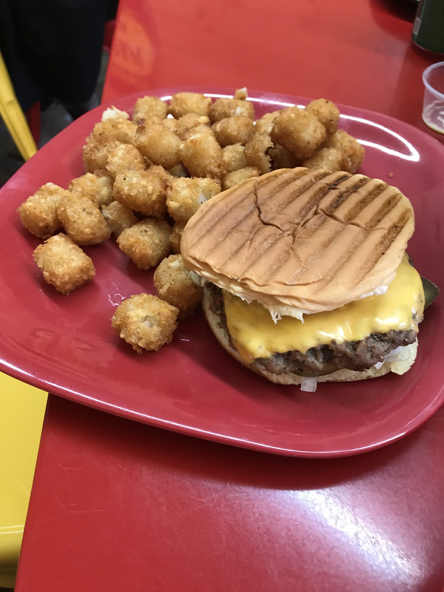Rudest service from a waitress ever. The owner Loretta told us that we could take a small side table and pull up a chair. About a minute later the waitress, rudely told us we were in the way and had to move. If we hadn’t already paid and we’re super starving, I would’ve left right then. She marched us outside where it was starting to rain and removed a woman with two small children from that table simply because they hadn’t ordered yet. That woman was smart and left. I wish I had done the same. We managed to race for a table inside after a while of sitting outside. Every table we say at was sticky. Our food took much longer and when it arrived, it was honestly simply ok. You’d think after being that hungry and waiting that long that it would taste like the best food ever. I’d recommend Naebers (the drive in). Much better food and for a little cheaper. Only good I’d say, is that the other staff including the owner were kind and I was offered a gluten free bun. If you dare to go, skip the automated early tip and wait to leave cash on the table at the end. Hopefully the other staff manages to get most of that tip I left. Also, don’t go at...