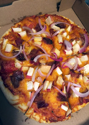 First time visitors, Saturday night. We decided to stop because the parking lot was fairly empty. We were not greeted. When I asked for a menu the host rolled her eyes as she threw me one. She seemed annoyed and there were TWO tables. She did not ask if we wanted a seat or a drink or anything. We intended to get a couple ciders while we looked at menu/made a takeout order. Other server was busy dealing with a bridesmaid group (with flights and tiaras and all) so we knew it would be dumb to try to bother her. We bothered our host again. We never got a drink menu, so we looked at the food menu and figured out what we might want while she grudgingly poured ciders. We ordered. We finished drinks. Food came out in boxes. We were asked to pay by the other server who never even seemed to notice us. We did not investigate the food, it smelled good and we needed to get out of that weird atmosphere. We opened the boxes when we got home. The salad we ate immediately, and it was great! Really. The 'Italian' dressing must be from a bucket, but it was ok. The pizzas we picked were the Apple Bacon Cheddar and the Margherita... SO. Let's say first that the crust was awesome. Sturdy, perfectly cooked, great taste. The cheese content of each was also just right. Here's where I have an issue: aside from the fact that nobody seems to care if we will come back or not, the menu should reflect how the pizza will be made, right? A Margherita Pizza, whether or not fancy or proper, has basil on it. Your menu says so. If you are out of basil and decide to sneak some watercress on there instead, you should probably tell us. Or the kitchen thinks anything green qualifies as basil, which I can't believe. Apple bacon cheddar pizza, on your menu, says only that. Sounds great. It doesn't say RED SAUCE. If it had, I would've asked to leave it off. It was weird and overpowered any other flavor. We probably would've liked the apples, even though they look weird and are way too chunky for the size of these slices. Oh and we added onions- because we like them- but it seemed like they were just thrown on the top at the end and left to sit. In conclusion: it's been a rough couple years, we know. But you guys really need to step it up in service and correct orders or you won't have repeat customers. There are not a lot of places around here that have the potential you have... and we are willing to give you a chance so I hope next...