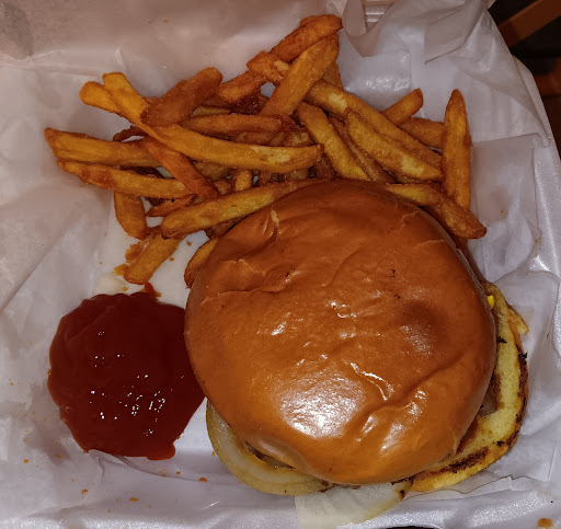 We went twice while visiting the area, the first night we had their special .79 wings with an order of fries and mac and cheese bites. The wings were crispy and the sauces were great, fries are good especially dipped in ranch(don't know if ranch is homemade but it was excellent) and we all loved the mac and cheese bites and I'm not normally a fan. Second night was burgers and chicken strips, burgers were fantastic, big, and cooked perfect. Chicken strips were fresh, crispy, and HUGE. Trust me when I say if you didn't stop at the dispensary first only get the half order, 2 is more than enough. The service was welcoming and the atmosphere was nice although it is fairly small. Even though everyone seemed to be locals we felt treated like one also, so much nicer than what I see in a big city. Overall great place and cant wait to pass thru...