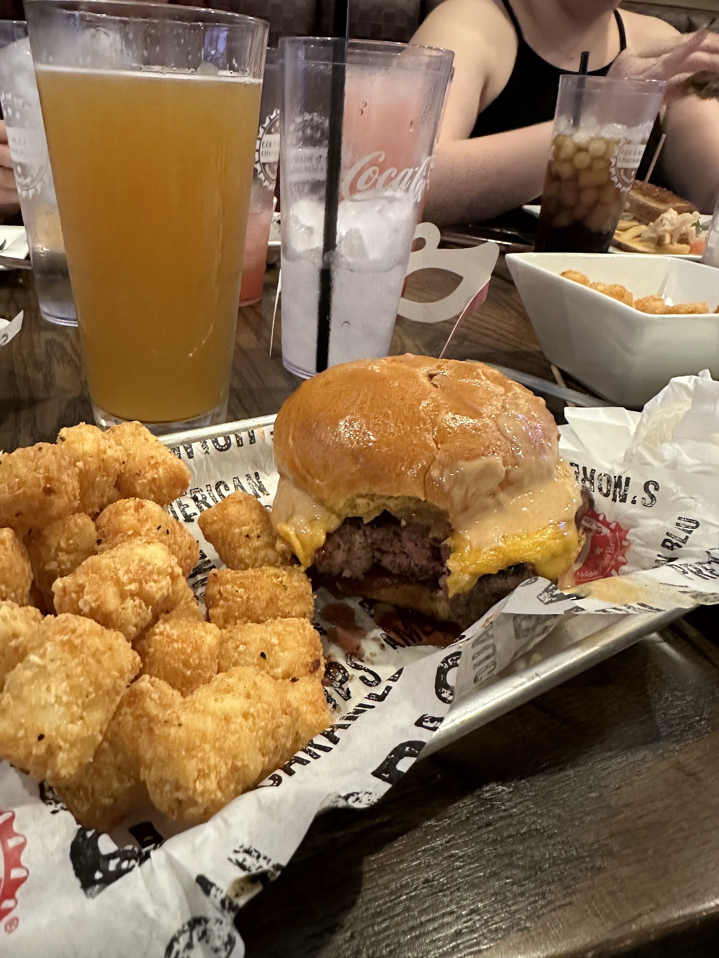 All American Burger with Tots Hangover Burger, add bacon, with Chips Small Pacifico Pilsner...