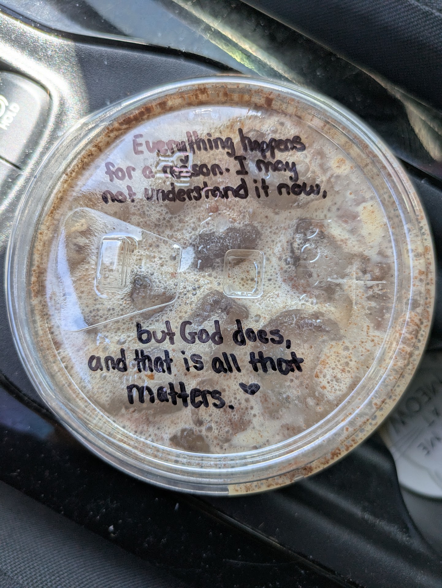 The workers there are phenomenal! They were helpful with telling us about the coffee and what flavors we may like. Love the messages on the cups. Friendly service and fast!