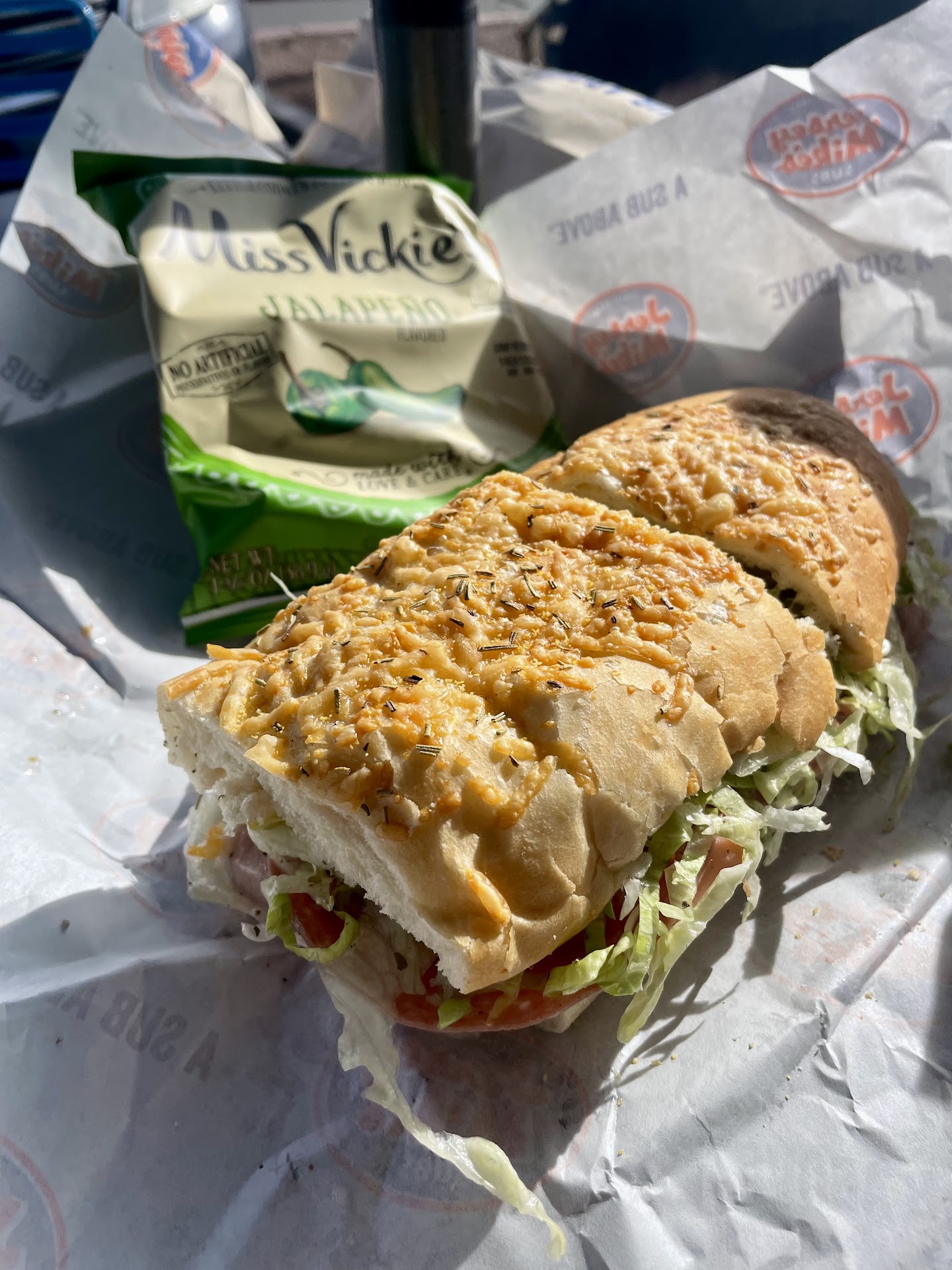 Disclaimer, I don't normally go to Jersey Mike's because they don't have a lot to offer a vegetarian. But we had a coupon, so we thought we'd give them a try.