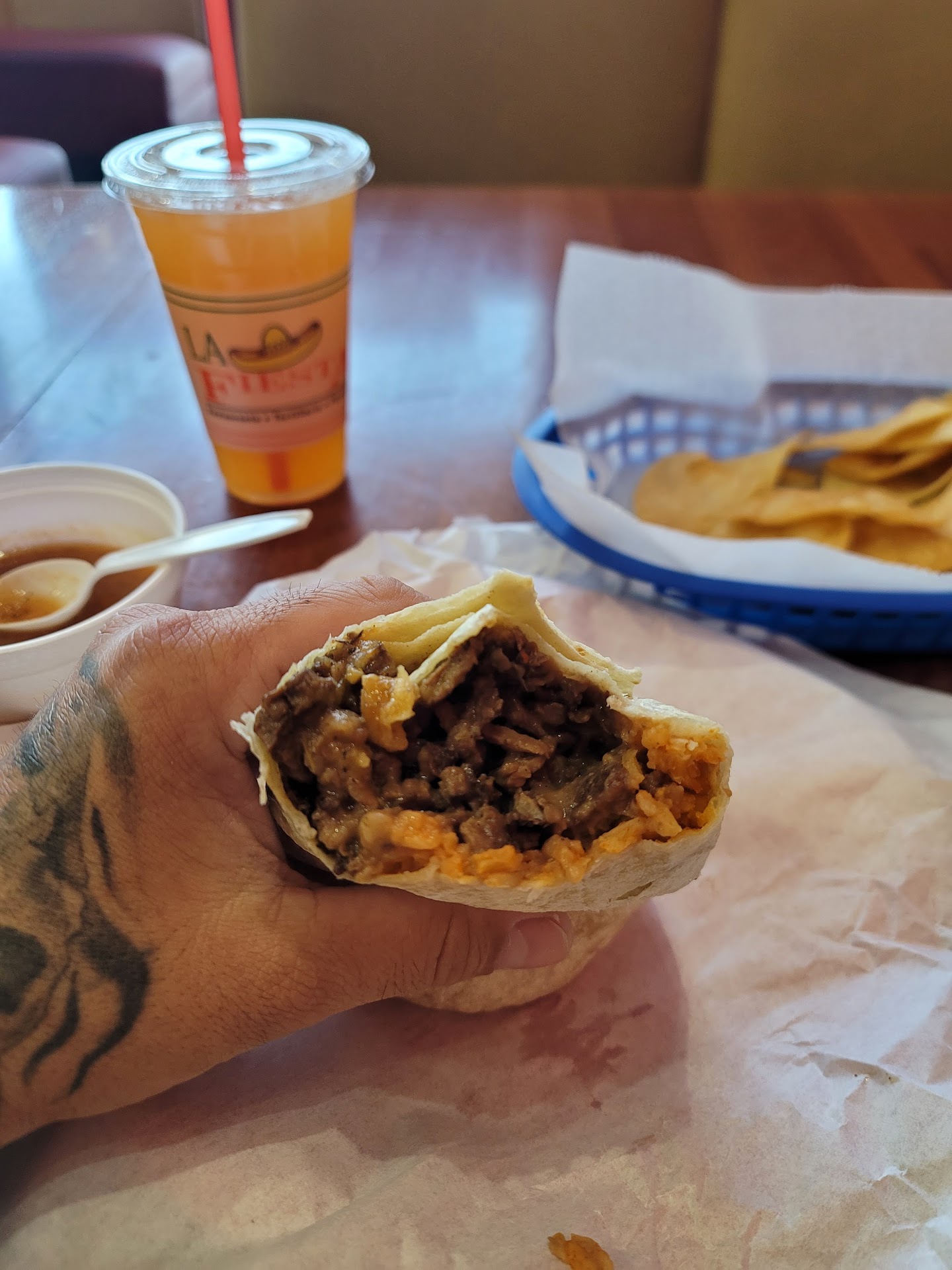 Walked into this location on Miller Rd., it's small & crowded with just the furniture. Walked up to the counter to look at the menu & no prices on their menu?! Asked the cashier if they have a menu with prices & with a stink attitude, she points to a dam QR code for me to scan like I want to look at a small menu on "my" personal phone. She goes in the back to find a menu with prices & hands it to me. The whole time she's taking my order, she has this ugly ATTITUDE on her face! She's short, small framed & wears eyeglasses. I ordered my food to go. Once I got home & saw my plate, it was edible. I ordered the Chile verde & the meat was tender BUT it was sitting in a pool of oil?! The tortillas I got w/my plate were hard so I threw those away. I also ordered Chicken Super Nachos & 3 orders of Carne Asada Fries. Out of those items, the fries by themself, were good. If you're craving some French fries, want someone to take your order w/an attitude while paying higher prices, this...
