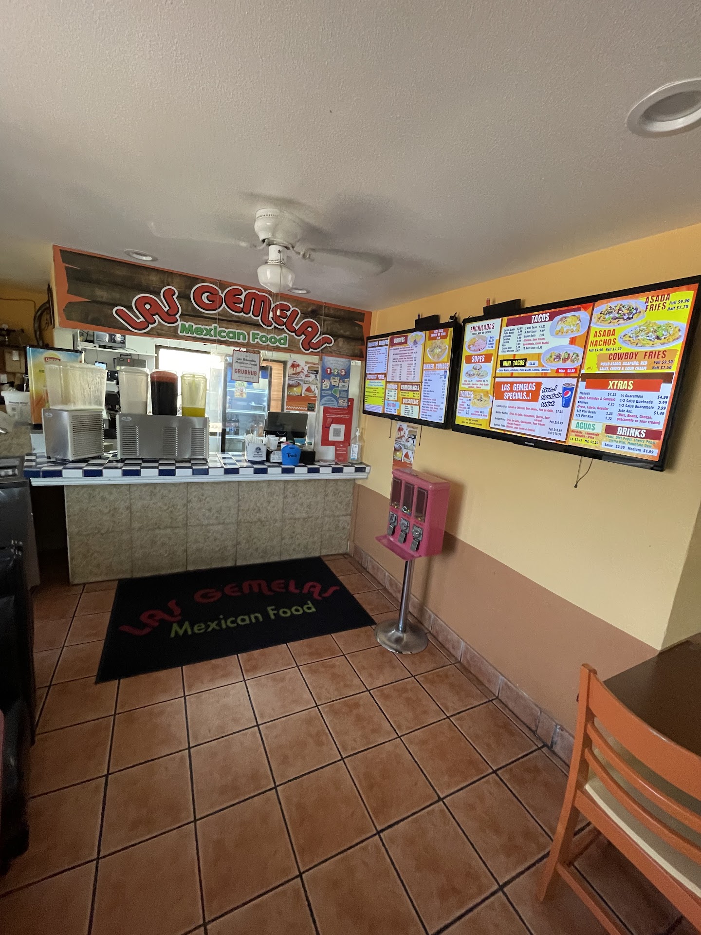 It was our first time going to Las gemelas . My dad and niece came with my husband and I to try it out. When we went inside it was not too busy. There was no one inside aside from the 3 employees we saw. They were cleaning windows and tables when we went in so it seemed to be well taken care of. The salsa bar had black avocado in it but other then that everything else seemed to be fresh. My dad ordered the asada tostada & shrimp cocktail. My niece ordered Carne asada fries. My husband & I ordered separately from them and had a half order of chicken nachos, 2 carnita sopes & 2 asada taco. My niece & dad got their food first. It was about 5 mins after they ordered. Their food was hot & the cocktail looked good. About 10 minutes later , my sopes came out. I did not start eating because I was waiting for my husband's food to come. I started looking for the receipt after another 3 or 4 minutes, and then seen that it had already been 22 minutes since we had ordered. We had to remind the workers about our missing food unfortunately. They did make my husband his nachos & taco eventually. It took about 5 mins for the food to come out. The food was hot and fresh and tasted delicious. The sopes were fried well and the carnitas were properly flavored. I would probably go through the drive through if I did come back out here. I am giving this place a 3 out of 5 for the missing food & the [not so] freshness of the salsa bar. I hope to come back again and reconsider their rating with a...